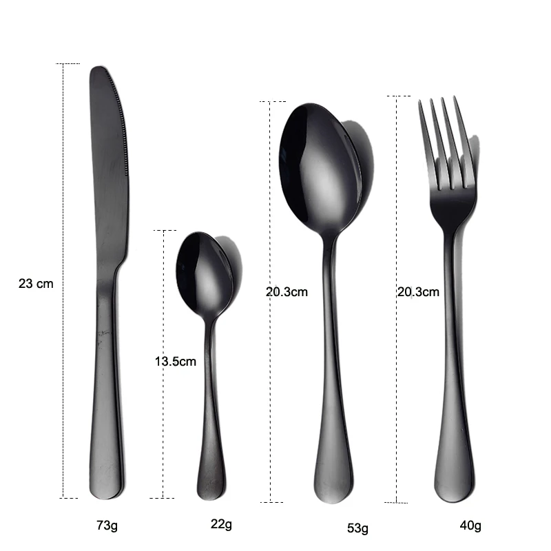 Набор столовых приборов из нержавеющей стали, 24 шт., черный, вилки...