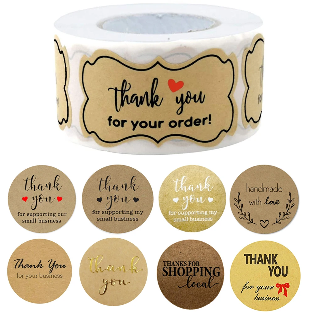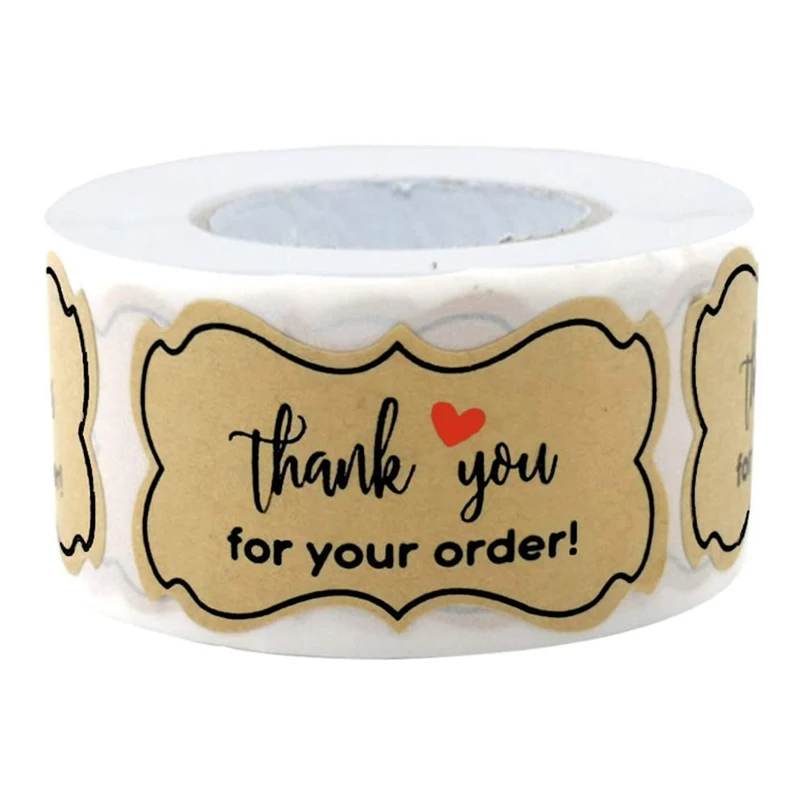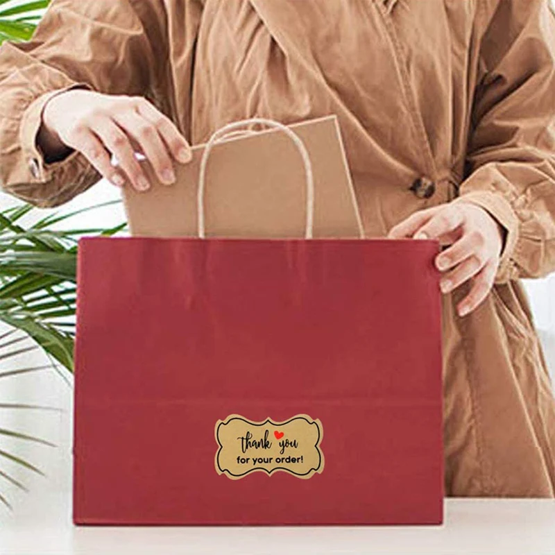 Наклейки из крафт-бумаги с надписью Thank You, канцелярские наклейки, круглые ярлыки с красным сердцем, золотые буквы этикетки для печати для заказа малого бизнеса