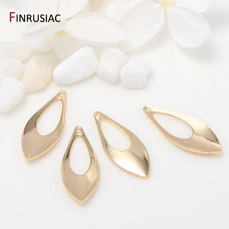 Подвески в форме капли из чистой меди, металлические, позолоченные, для изготовления ювелирных изделий, 2 размера