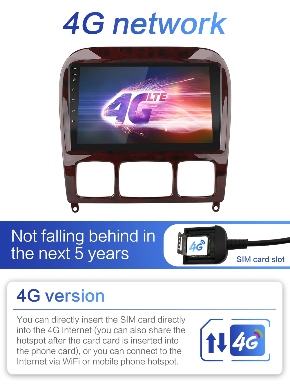 Версия 4GВы можете подключить sim-карту непосредственно в интернет 4G (вы также можете поделиться точкой доступа после вставки карты в карту телефона), или вы можете подключиться к интернету через Wi-Fi или мобильную точку доступа.Версия WiFiВы можете подключаться только к Интернету через WiFi или мобильные точки доступа.(Пожалуйста, будьте осторожны, чтобы не покупать ошибки,Не понимаю, можете связаться со службой поддержки клиентов)