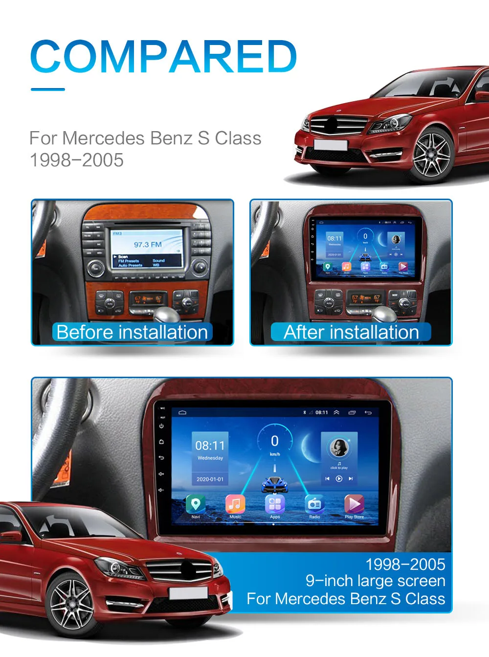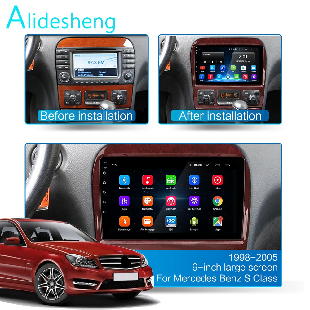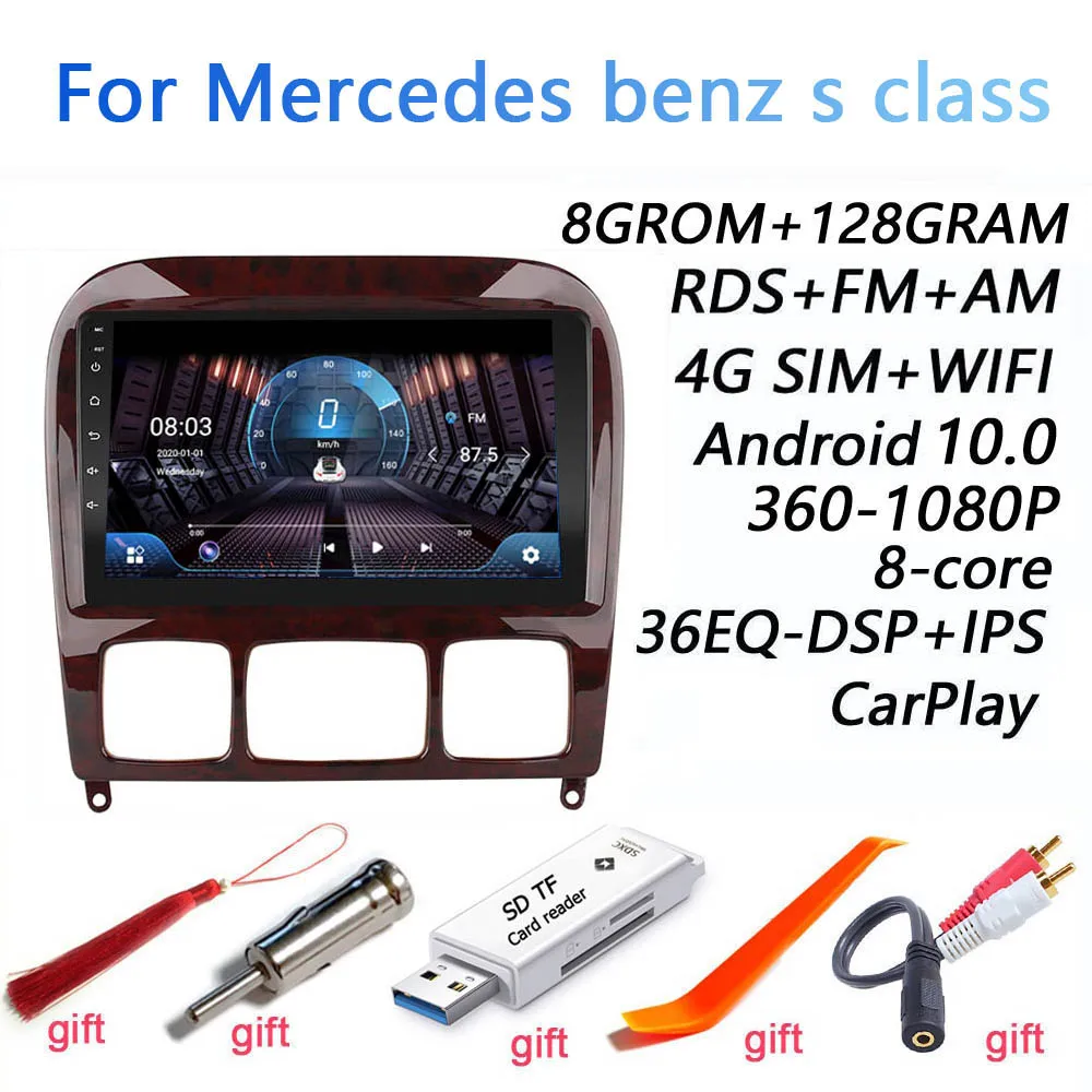 Android 10,0 автомобильное радио для 1998-2005 Mercedes Benz S Class W220 S280 S320 S350 S400 S430 S500 S600 S55 AMG 9 дюймов 1024*600 8 ядер wifi Bluetooth Видео Аудио мультимедиа 2 din Автомобильный dvd-плеер