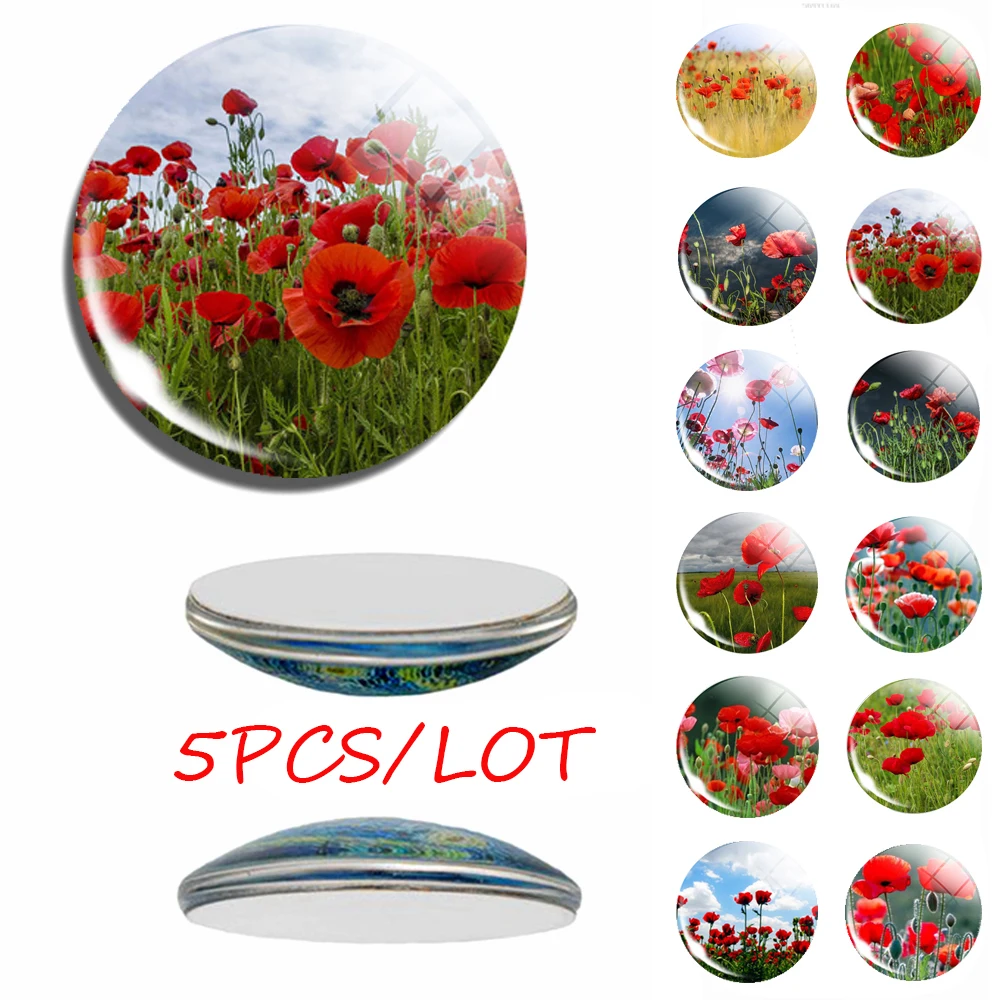 5 шт.компл. маковые цветы художественный узор 1216202530 мм бижутерия со стеклянными кабошонами DIY ювелирное украшение в форме подвески женские модные аксессуары