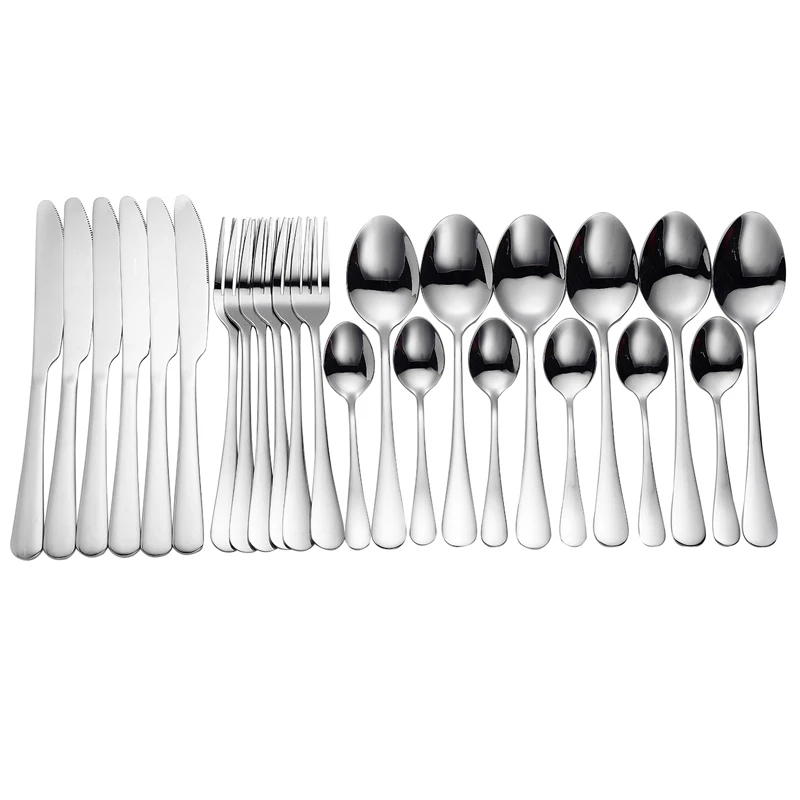 Набор столовых приборов из нержавеющей стали, золото серебряные столовые приборы, 24 предмета, набор столовых приборов, ножи, вилки ложки, столовая посуда