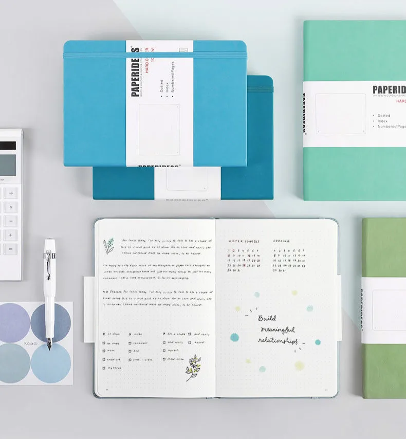 Безумно красивый цвет!!! Продавец делает приятные подарки в виде открыток и писем! Бумага гладкая. Страницы пронумерованы, в начале есть оглавление, которое можно самостоятельно заполнить. Страницы немного просвечивают брашпены и лайнеры но не так сильно. Точка серая не бросается в глаза и не мешает записям! Мне очень понравилось