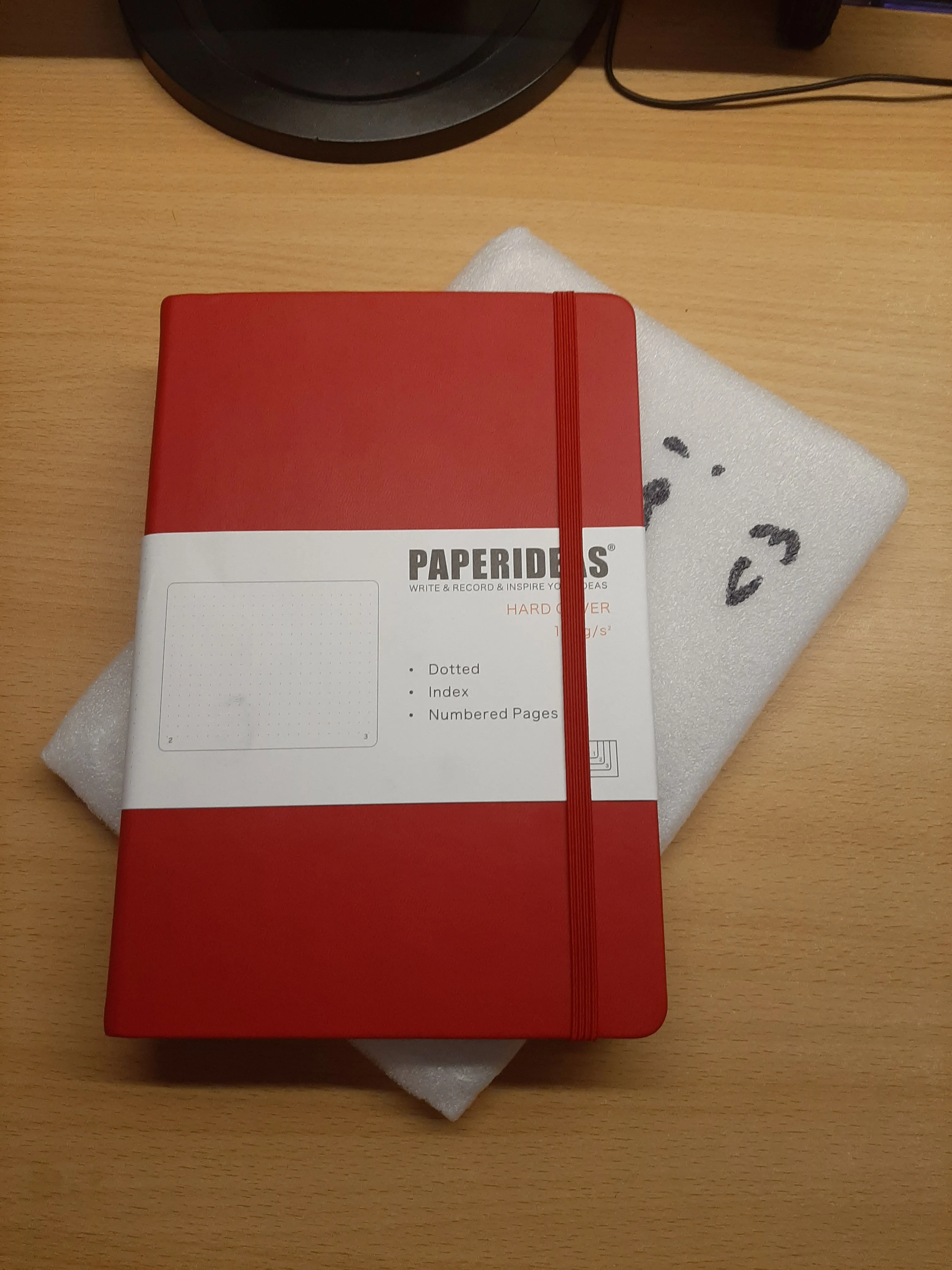 Я получил посылку очень быстро. Он был хорошо упакован, и продавец также оставляет действительно хорошее сообщение на упаковке, однако будьте осторожны, когда вы открываете его, потому что сообщение оставляет пятна, и это действительно трудно удалить. Ноутбук выглядит очень хорошо, и страницы довольно толстые. Я определенно рекомендую это! :)