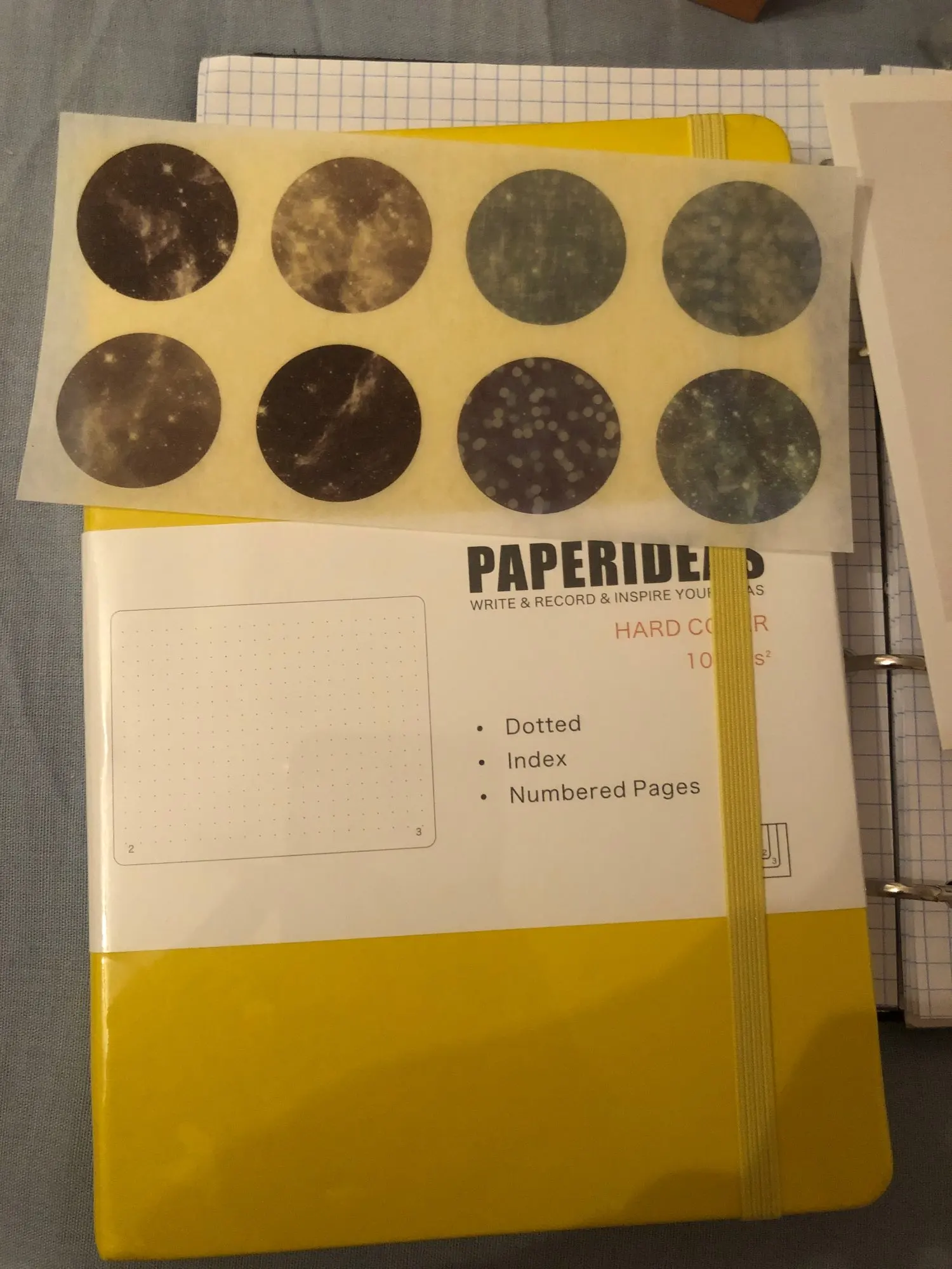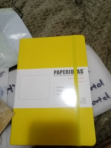 Идеальный ноутбук. В горошек, с языками, с указателем и первой страницей, чтобы написать имя и контакт, если вы потеряете его. Он поставляется с резиновыми и двумя страничными маркерами. Точно как на фото. И ПРОДАВЕЦ прошел. Они отправили Бесплатные наклейки, открытки и заметки как внутри упаковки, так и самой упаковки! Удивляйтесь, я обязательно снова попрошу этот магазин!