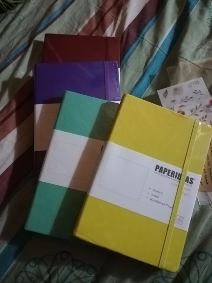 Тетради красивые, очень хороший материал, толстые и пронумерованные листья, что облегчает мне поиск моих записей, делая индекс. Он прибыл перед расписанием, и поставщик очень подробно. Обертка для проектора прибыла с преданностью и в подарок несколько открыток и наклеек, в дополнение к персонализированной самоотдаче. Они создали верного покупателя.