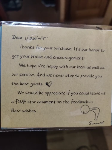 Супер быстрая доставка, очень хорошее качество, мне нравится. Большое спасибо за сообщение, открытки и наклейки. Рекомендуемый продавец