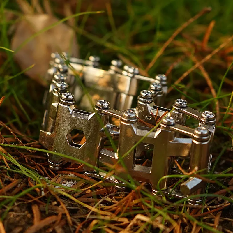 1. Каждая стальная цепь соответствует инструменту, включая отвертку, консервный нож, открывалку для бутылок и шестигранный ключ. 29 стальных цепей могут быть случайным образом объединены или использовать меньше деталей, чтобы стать браслетом.