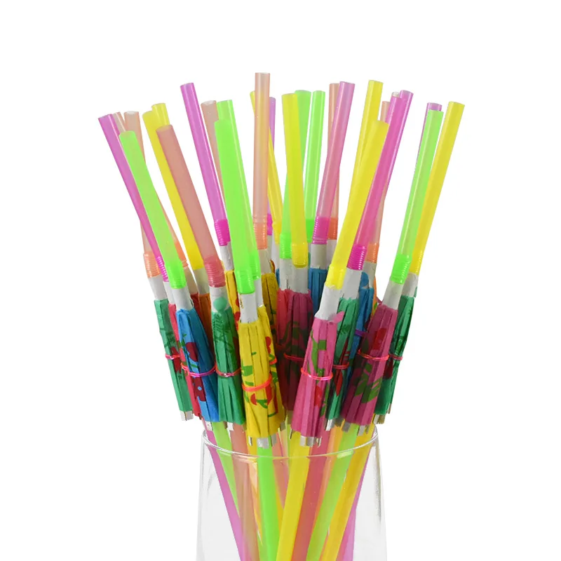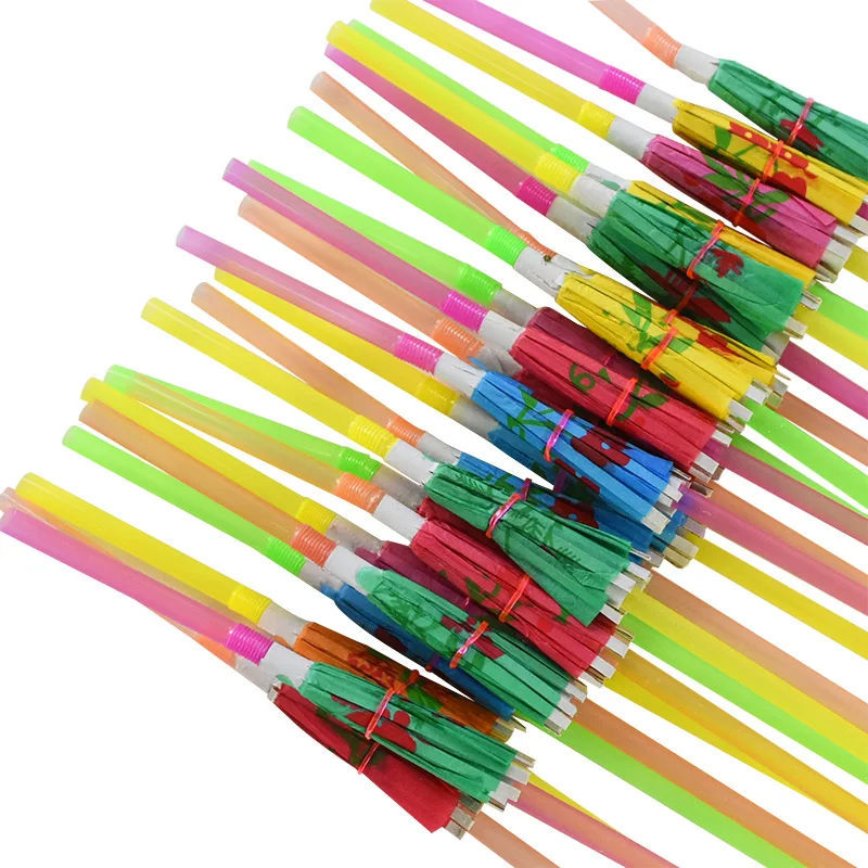 2550100 шт Смешанные бумажные соломинки многоцветные пластиковые соломинки с милым бумажным зонтиком Гавайские вечерние принадлежности коктейльные соломинки
