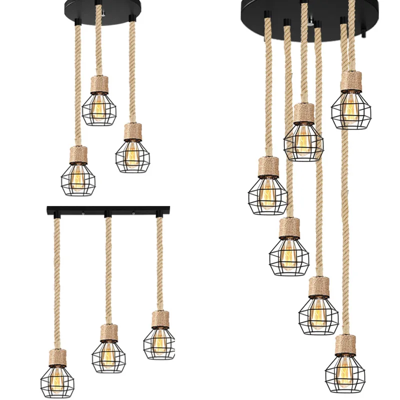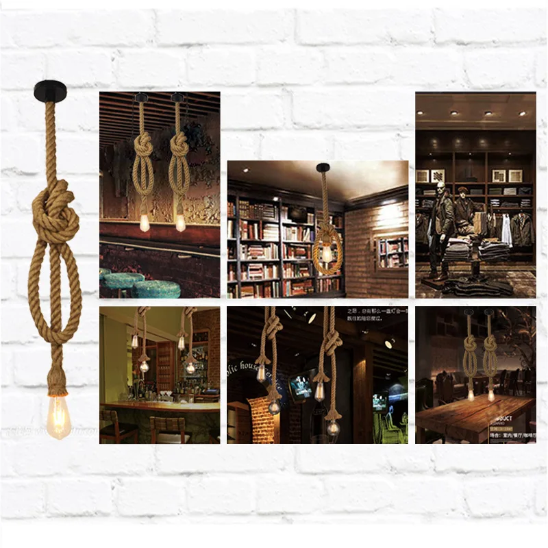 Подвесной светильник в стиле ретро, индустриальная веревка из пеньковой веревки для ресторана, декоративное освещение для лофта, кухни, светильник ПА для бара