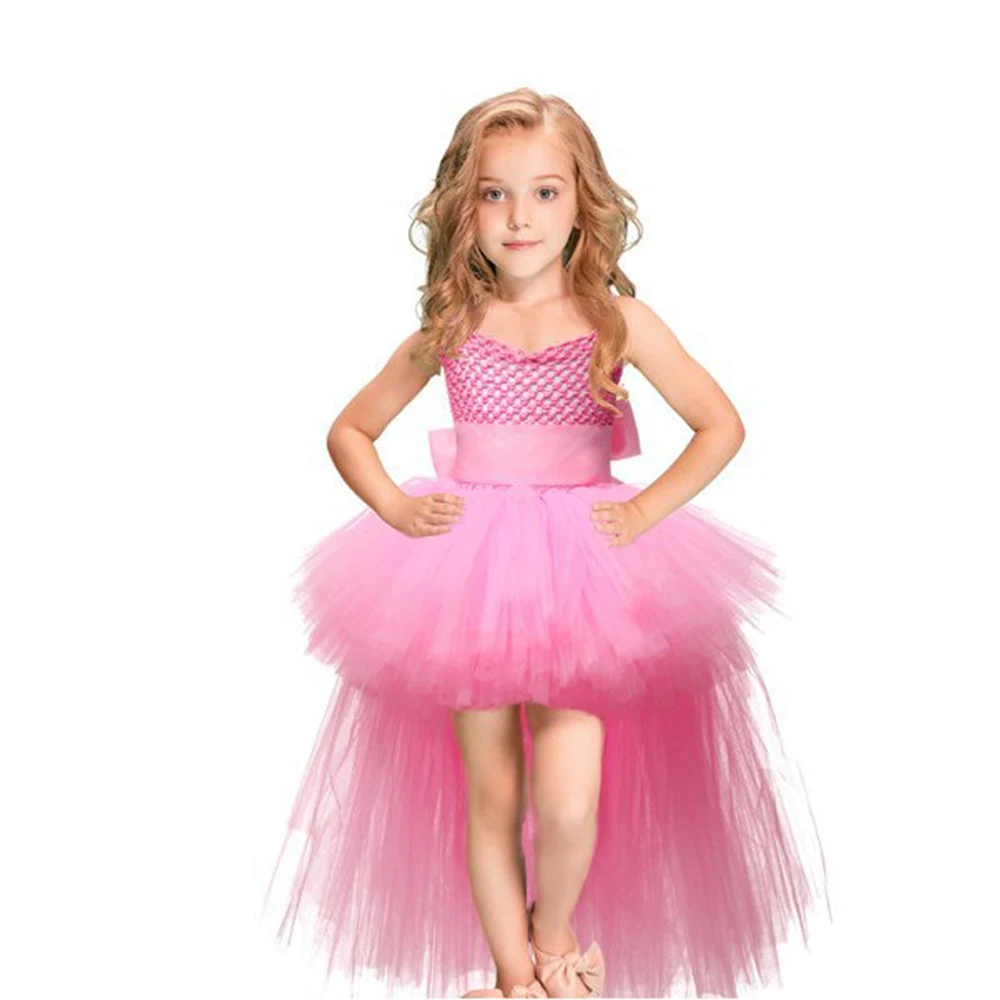 Детское платье-пачка со шлейфом для девочек, белое Тюлевое платье с...