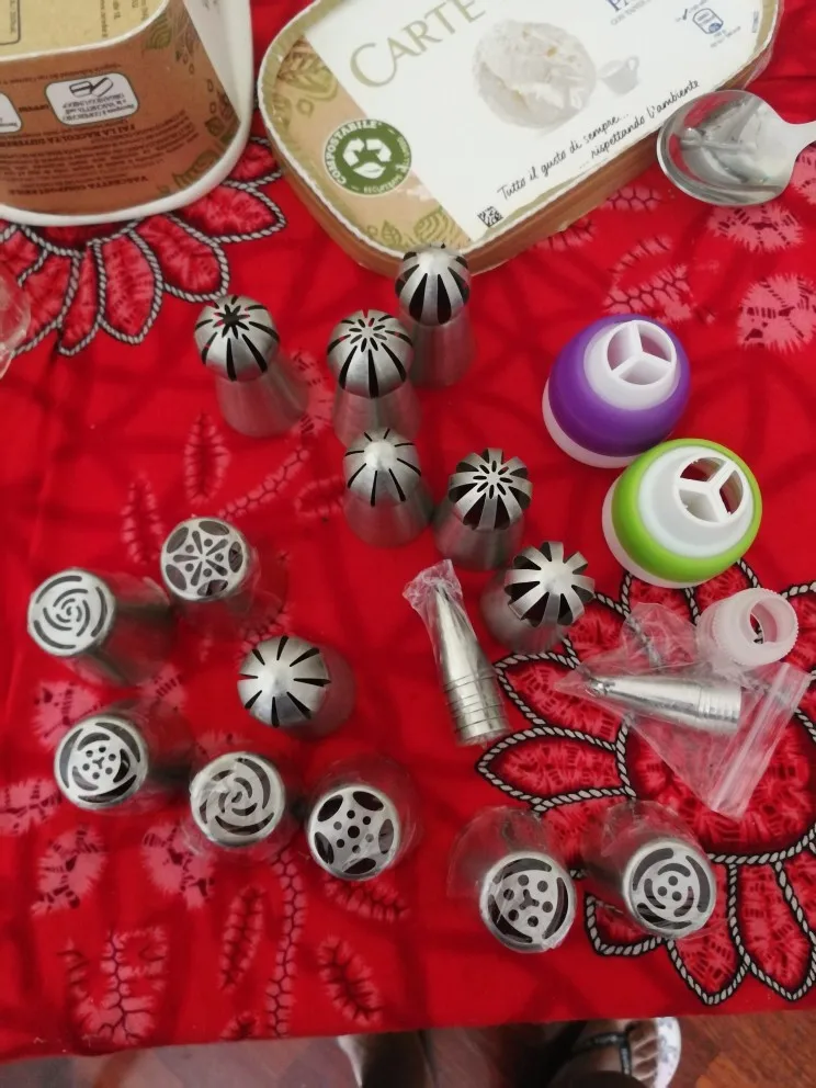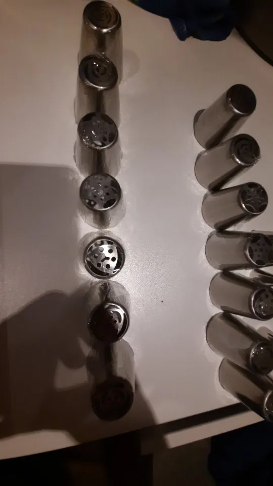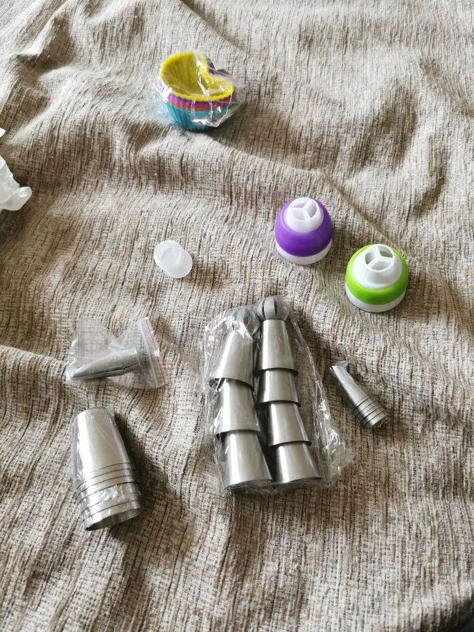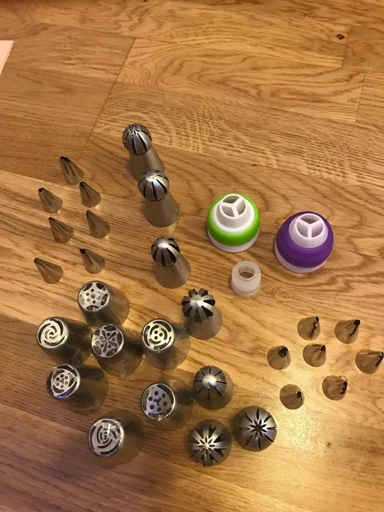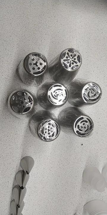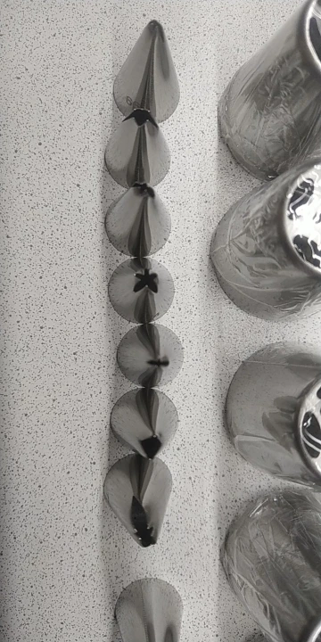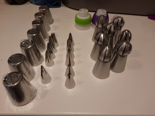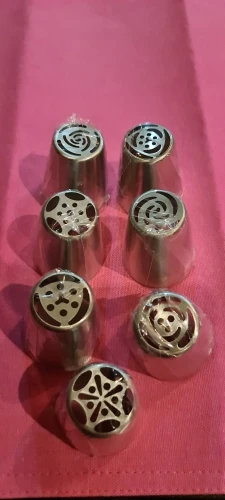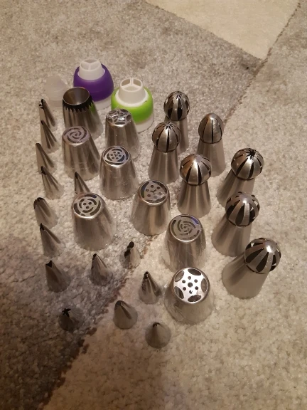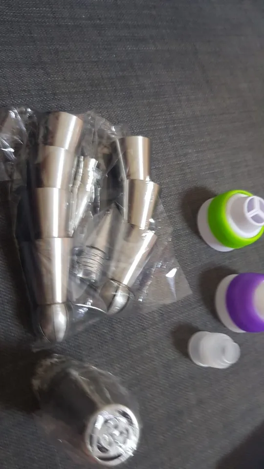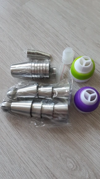3 недели до Ленобласти. пришла в составе "солянки" на почту. внутри насадок швов нет! все упаковано по назначению. "тройники" огромные. переходник отличный! все вырезано и обработано изумительно точно - нигде ни лишнего зазора, ни стружки, ни испорченного рисунка! идеально для работы с кремом, сливками и безе! металл, нержавейка. Малый переходник для малых насадок, тройники подходят для всех крупных насадок! РЕКОМЕНДУЮ!!