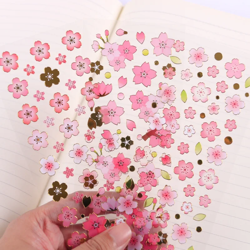 Прозрачные блестящие украшения в виде цветка вишни, прозрачные декоративные наклейки для скрапбукинга, наклейки для бровей из бумаги
