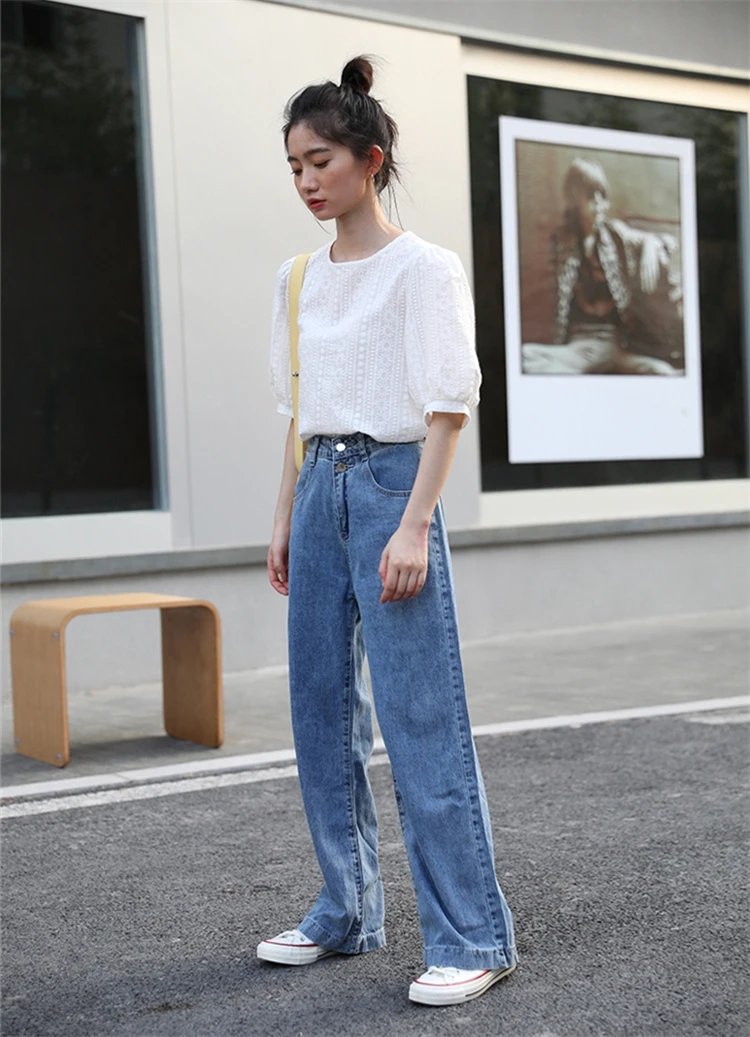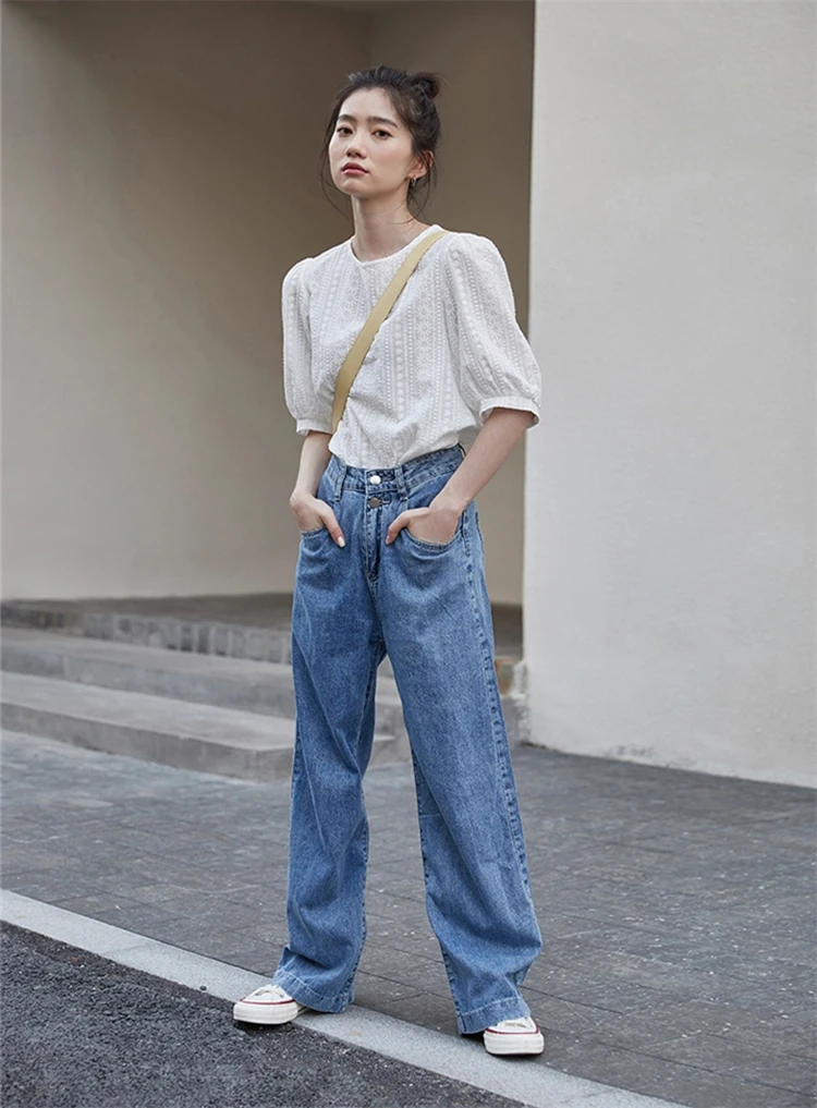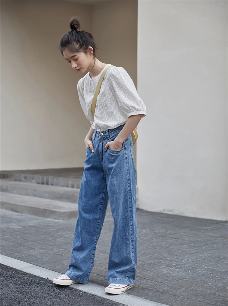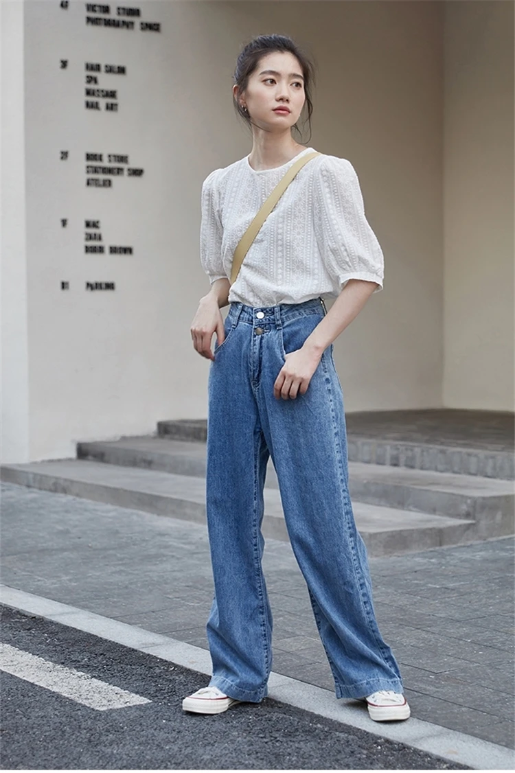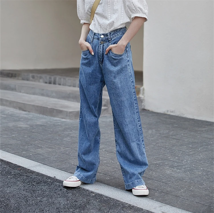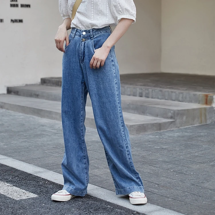 ColorfaithНовинка 2022 года; Капри с высокой талией; Прямые джинсовые брюки; Уличная одежда; Широкие брюки; Сезон весна-лето; Женские джинсы; Брюки; J8801