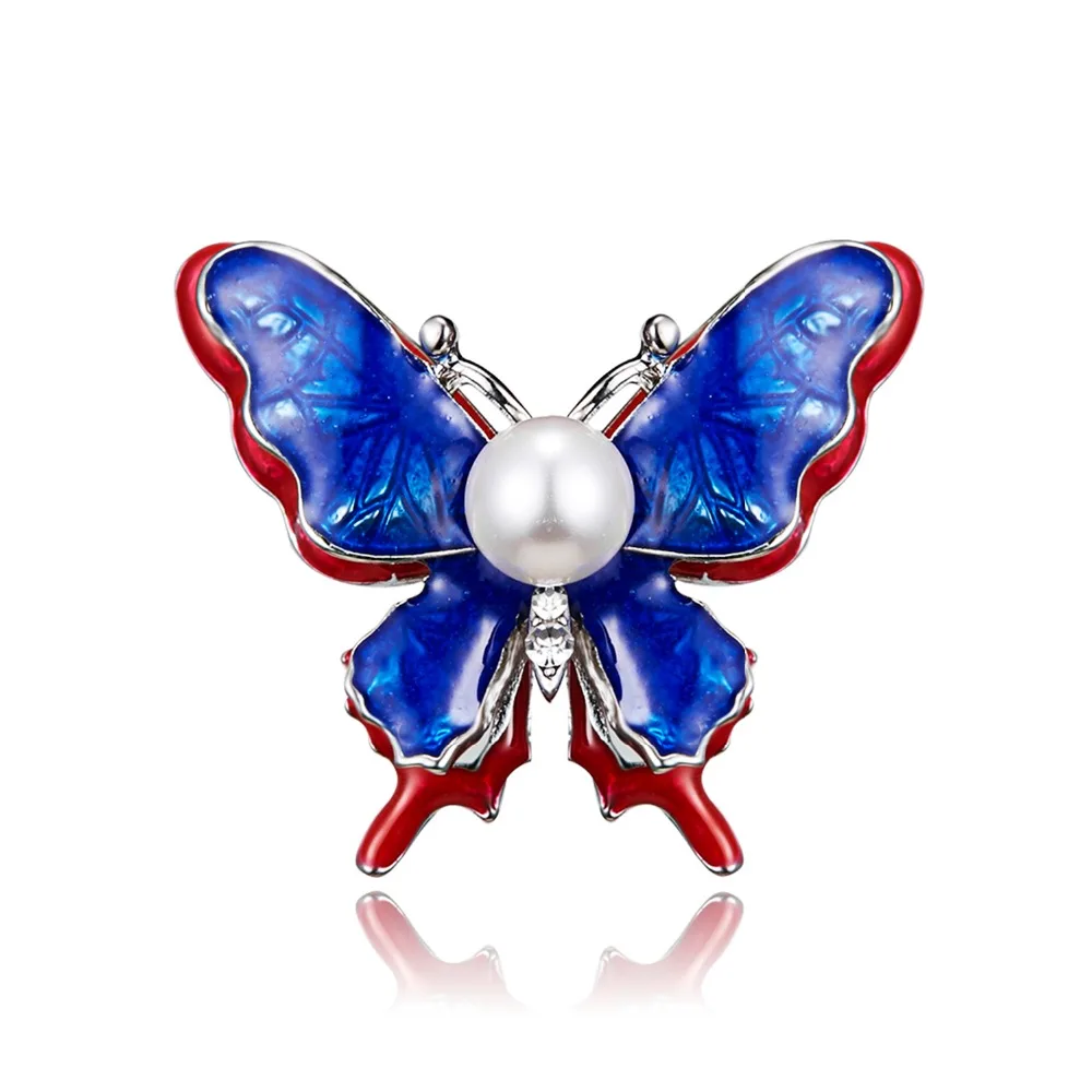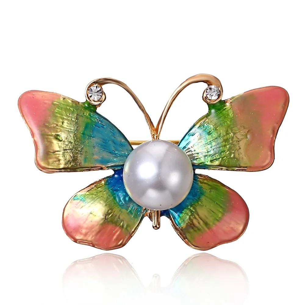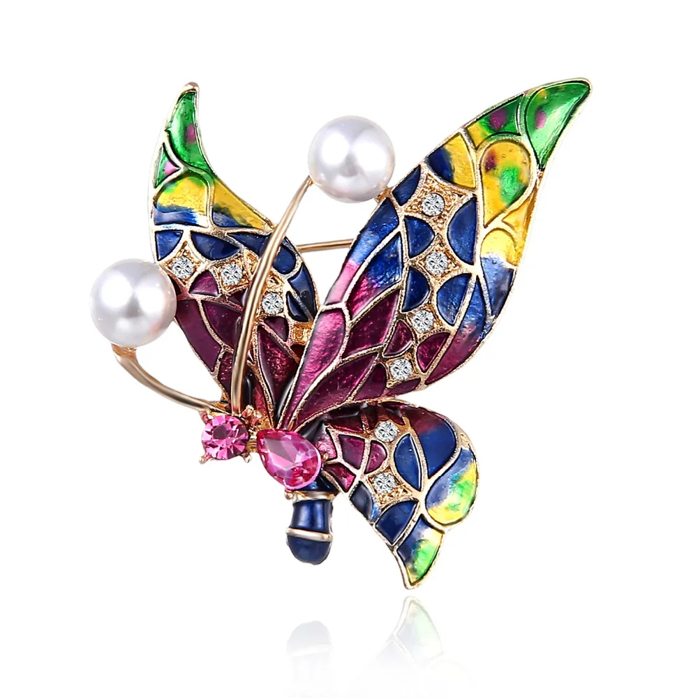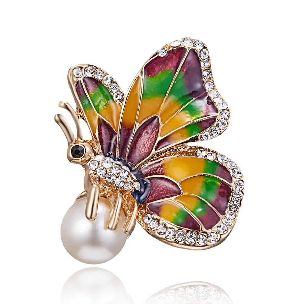 Брошь женская, большая, с жемчугом, в форме бабочки