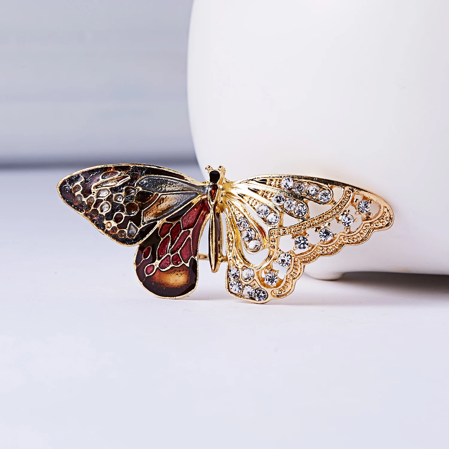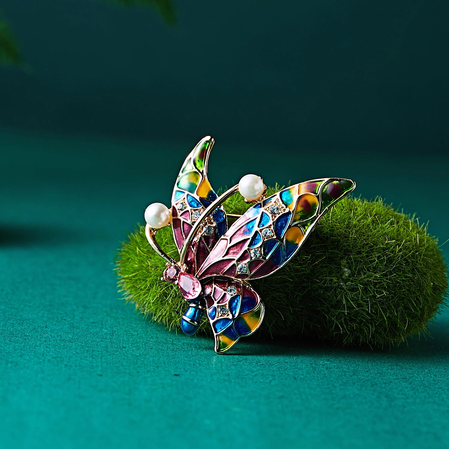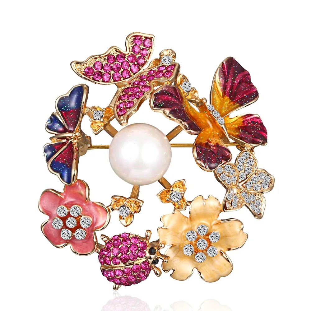 Брошь женская, большая, с жемчугом, в форме бабочки