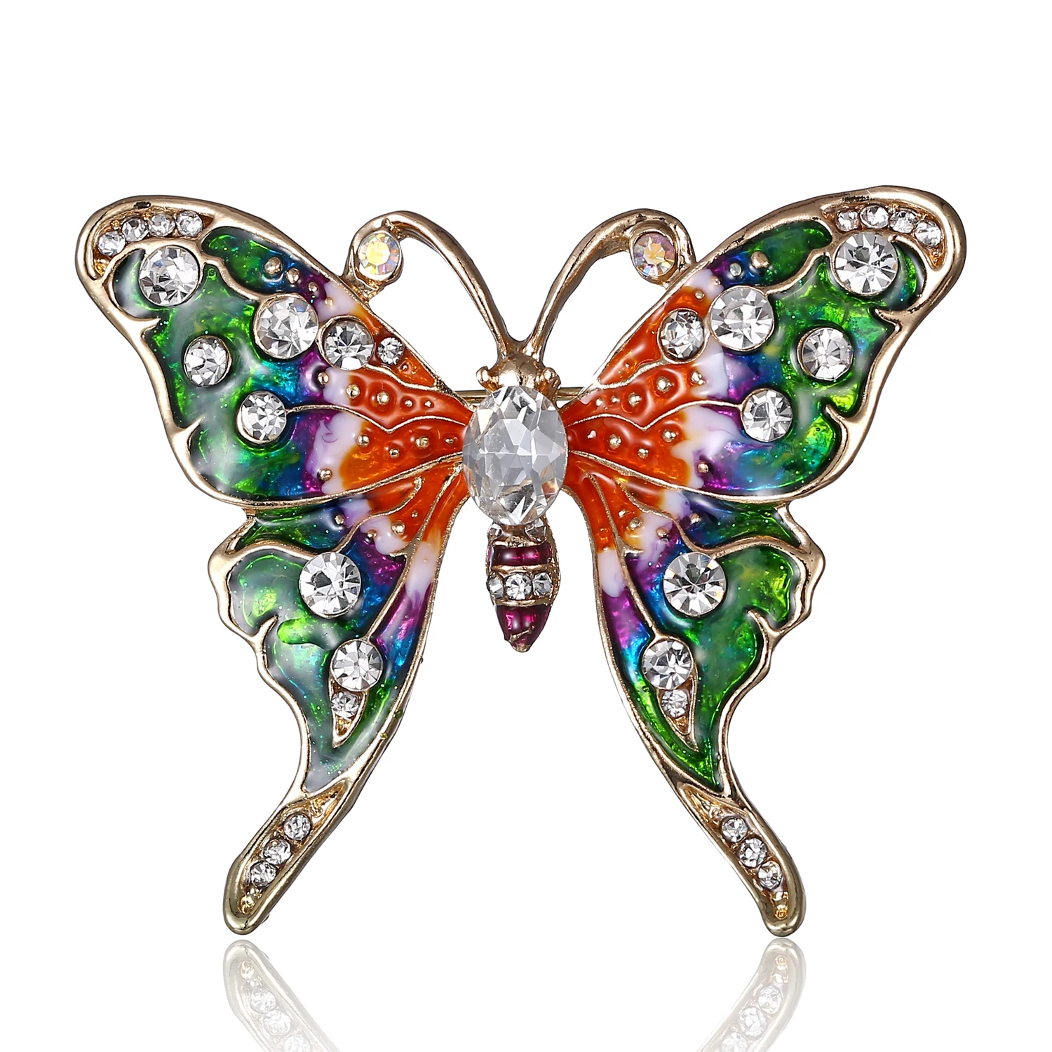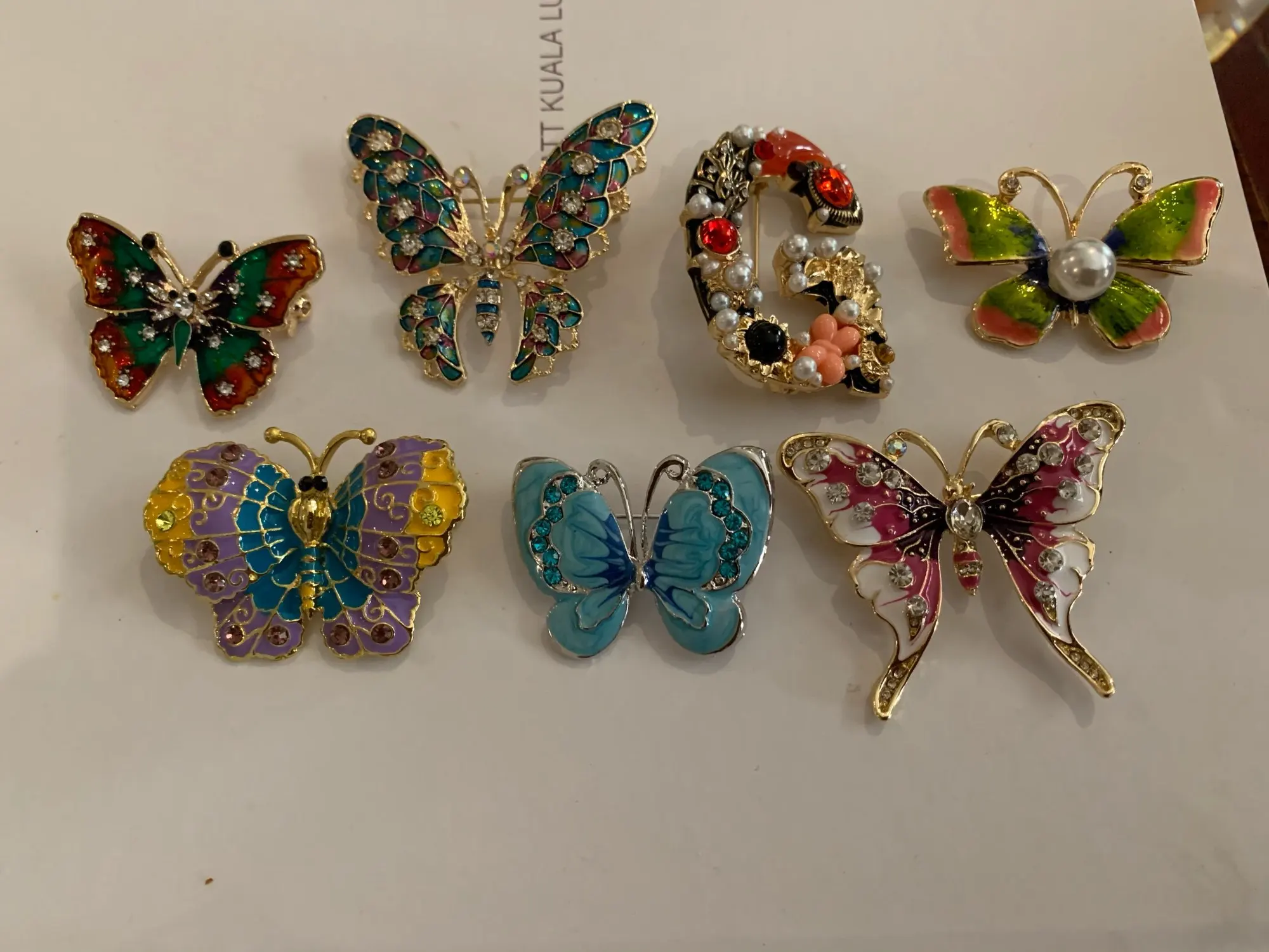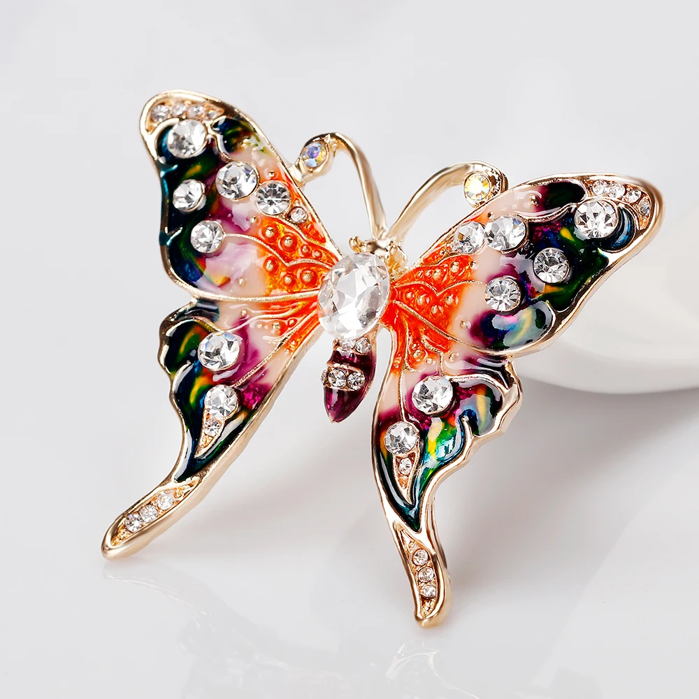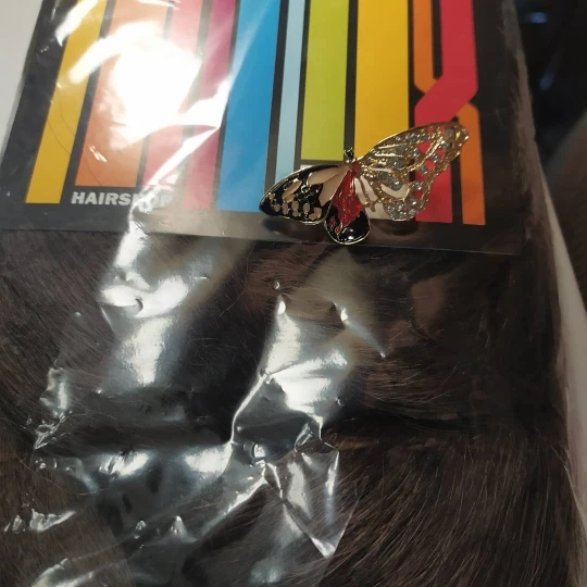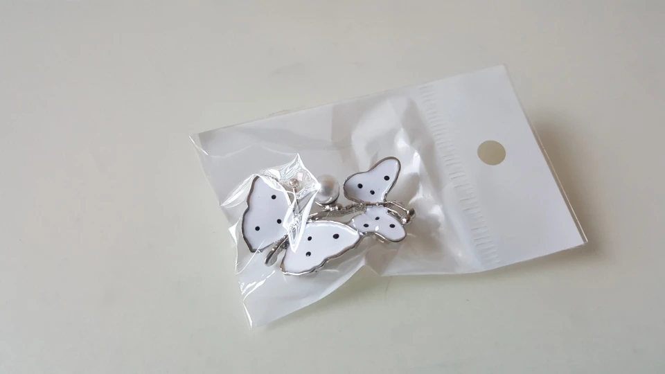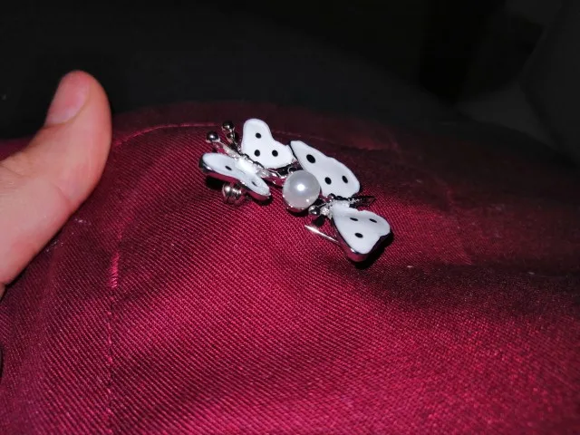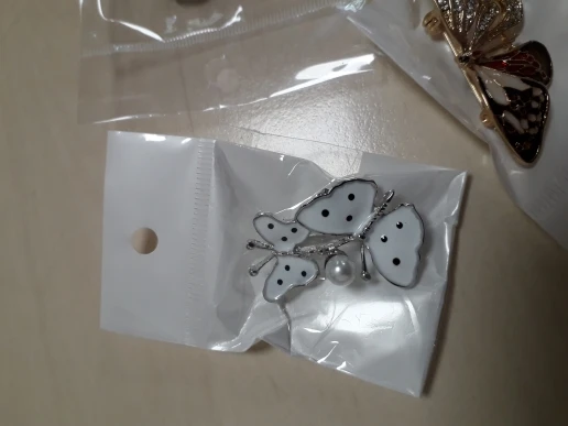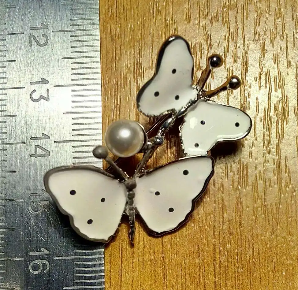 Бабочка шла в соединённой посылке почти месяц, брошка просто шикарная, эмаль нанесена отлично, камешки переливаются, а вот застёжка у меня попалась бракованная, очень хлипкая, не держится, расстёгивается, пришлось зажимать пласкогупсами, но за такую красоту звёзды снимать не стала , уж очень красивая бабочка . брала за 116,86р.