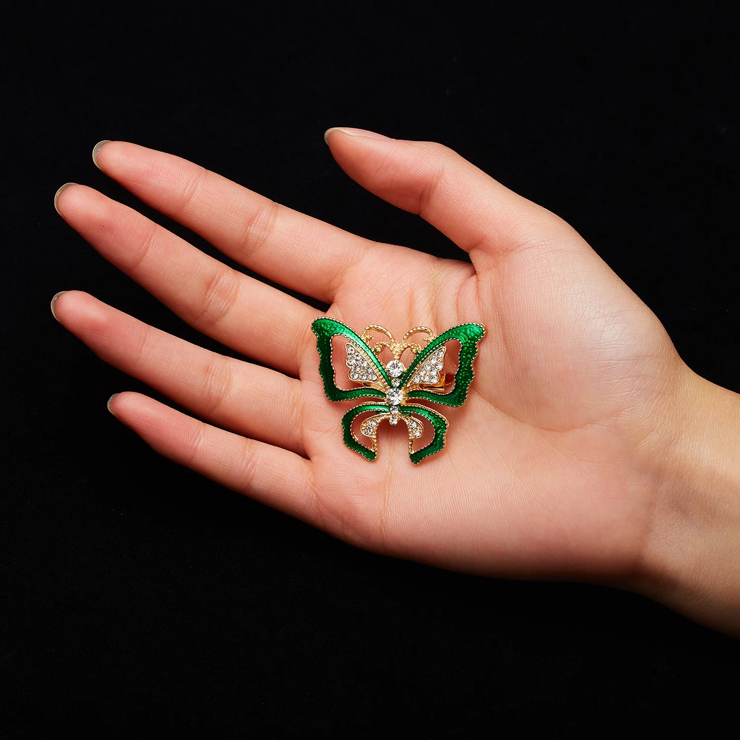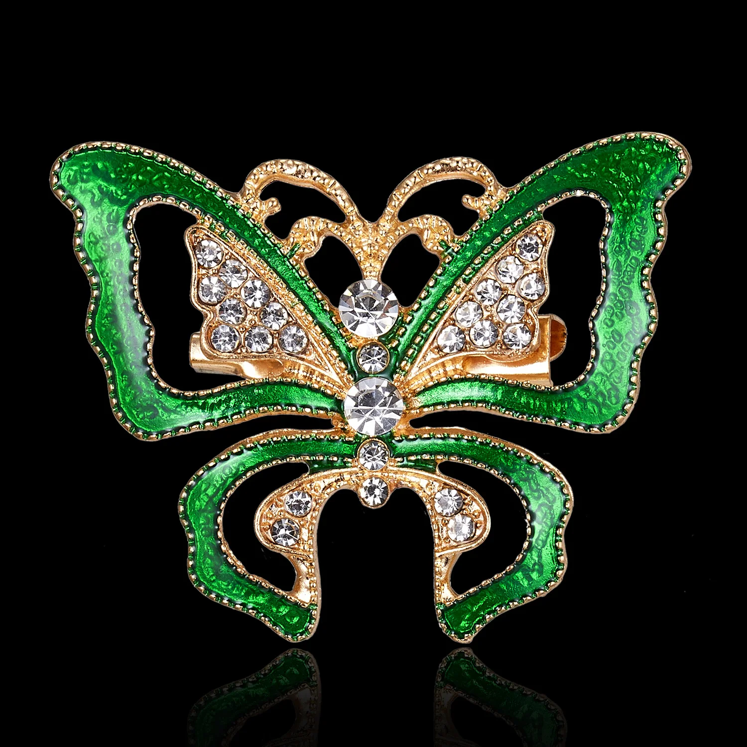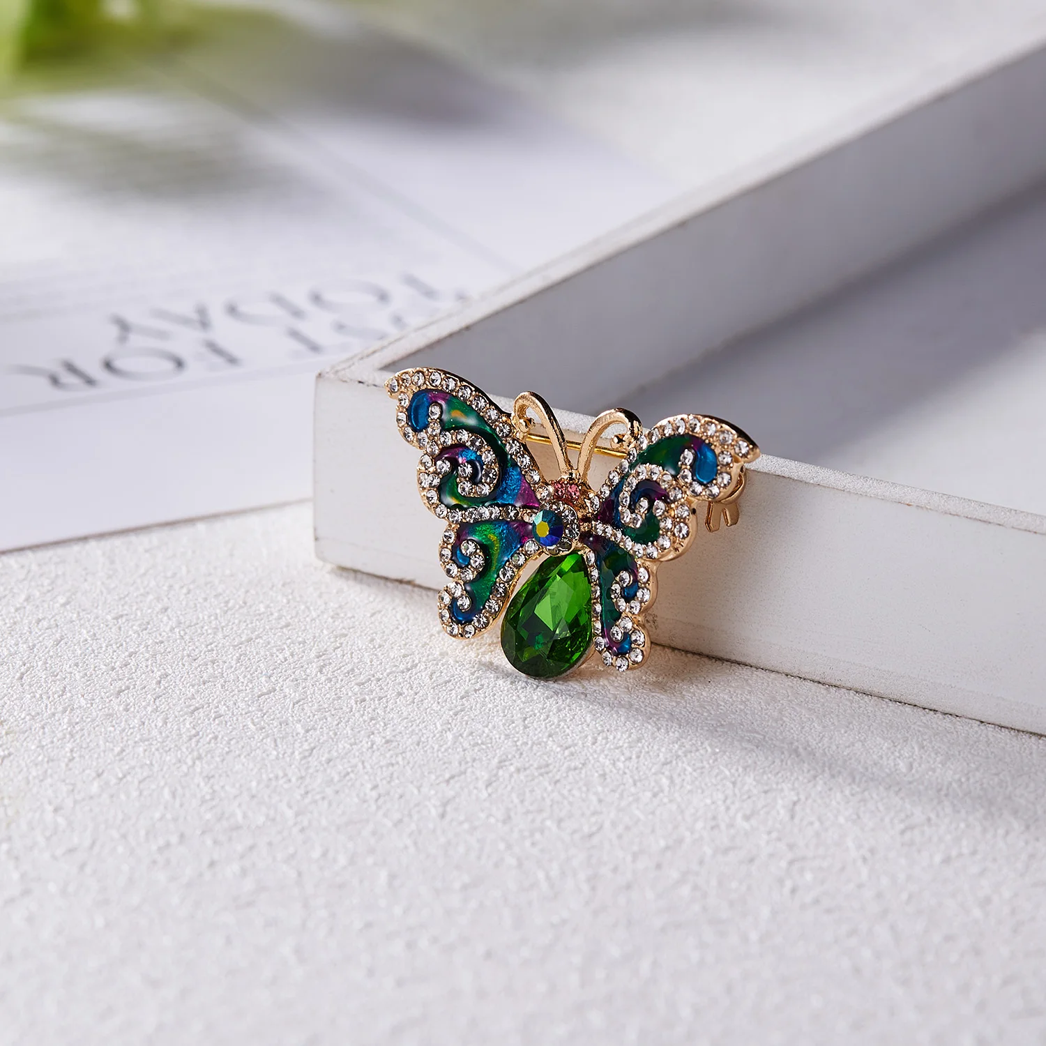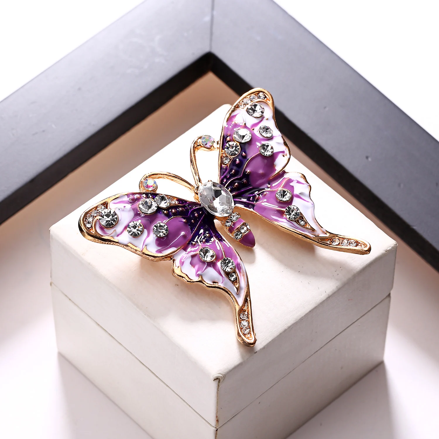 Бабочка шла в соединённой посылке почти месяц, брошка просто шикарная, эмаль нанесена отлично, камешки переливаются, а вот застёжка у меня попалась бракованная, очень хлипкая, не держится, расстёгивается, пришлось зажимать пласкогупсами, но за такую красоту звёзды снимать не стала , уж очень красивая бабочка . брала за 116,86р.