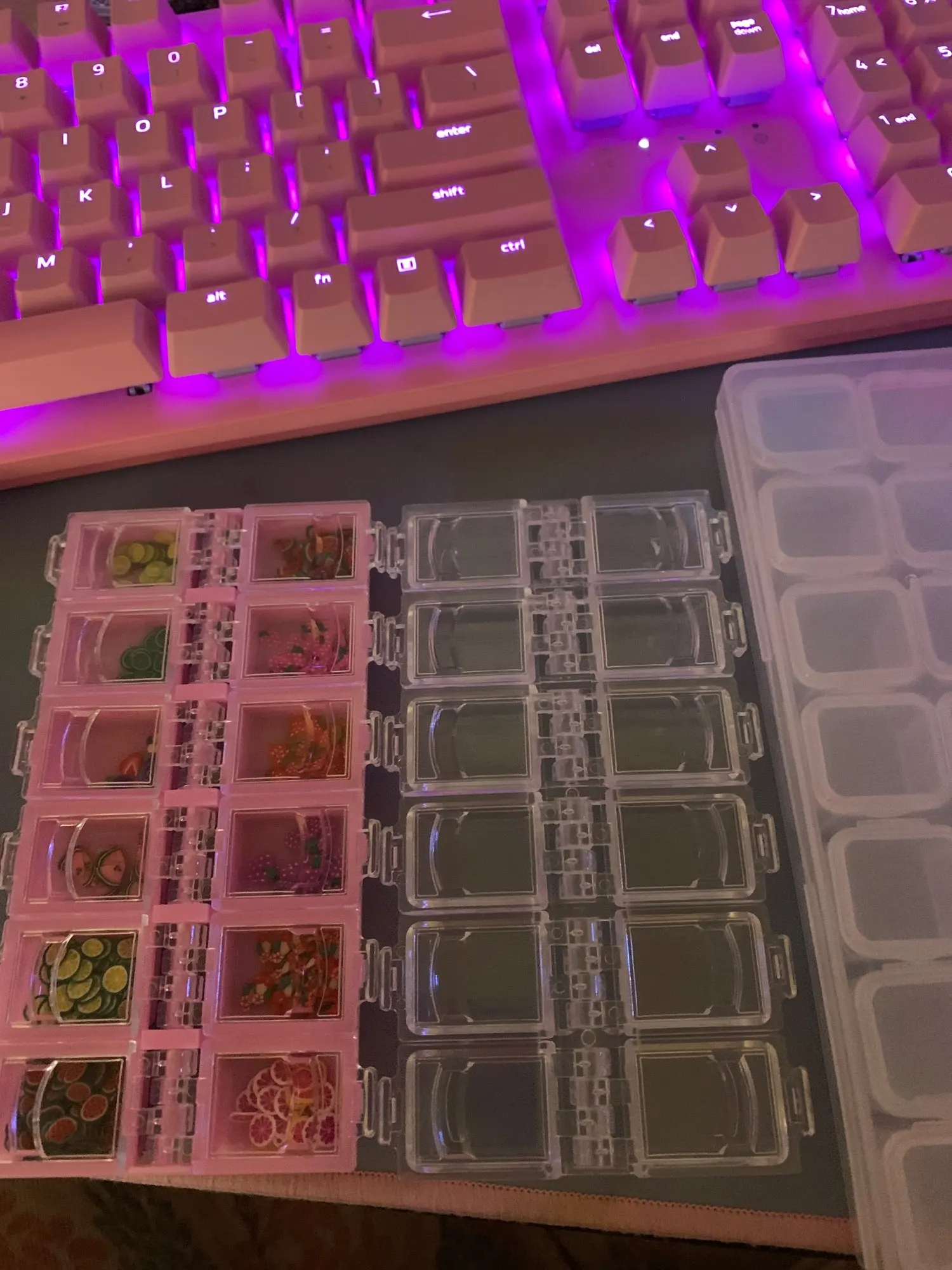 These storage containers are perfect for charms and small or tiny nail art. I love it. Each little container opens individually and is tight so nothing falls out. It was a little tight at first but with more usage it wasn't as tight but still very secure. I'm happy I got them and would recommend this seller. Shipping took about a month or so