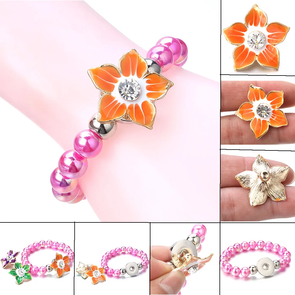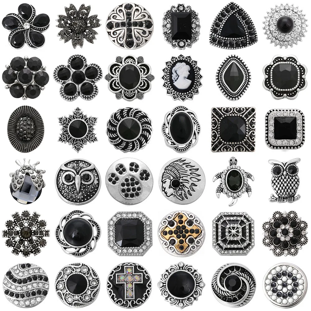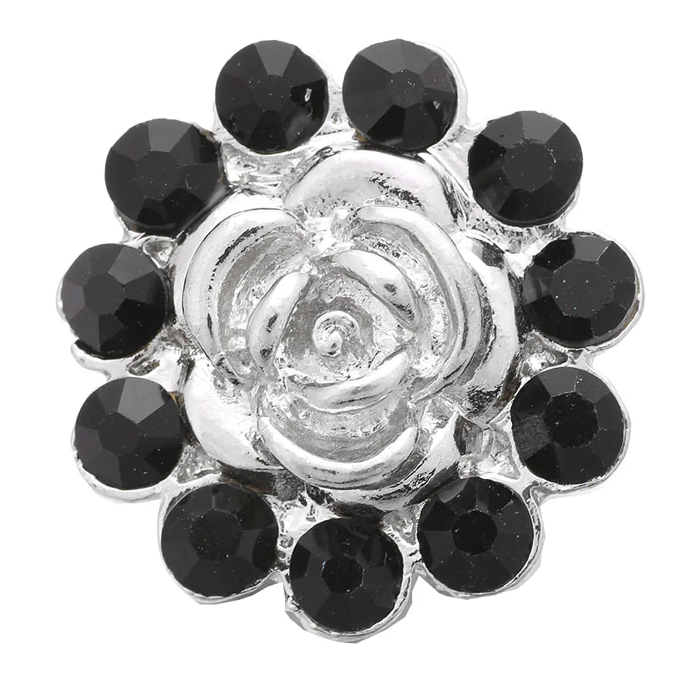 5 шт.лот, черные кнопки, ювелирные изделия, модные стразы, цветы, 18 мм, кнопки, ювелирные изделия, подходит для 18 мм, 18 мм, кожаный браслет
