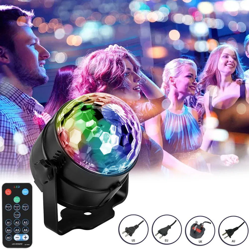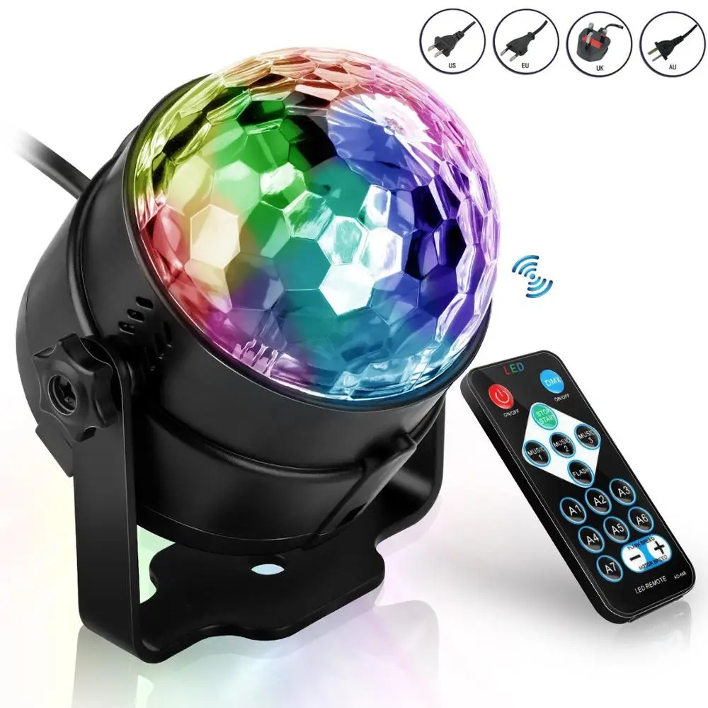 Вращающийся со звуковым активацией диско-шар, вечерние светильник s, стробоскоп, светильник 3 Вт RGB, светодиодный сценический светильник s для рождества, дома, KTV, вечерние свадебные шоу