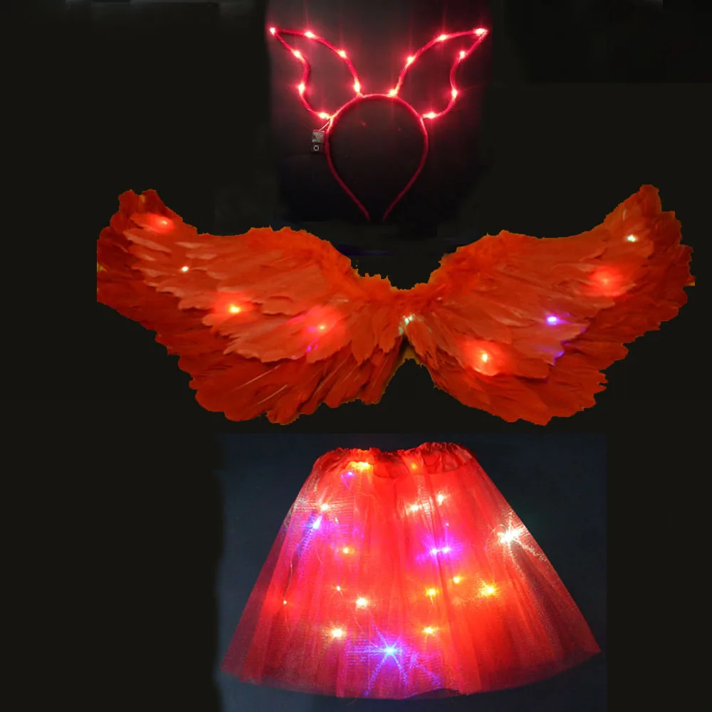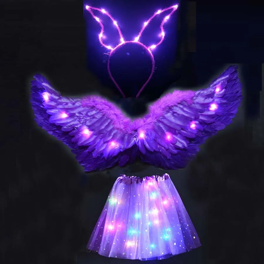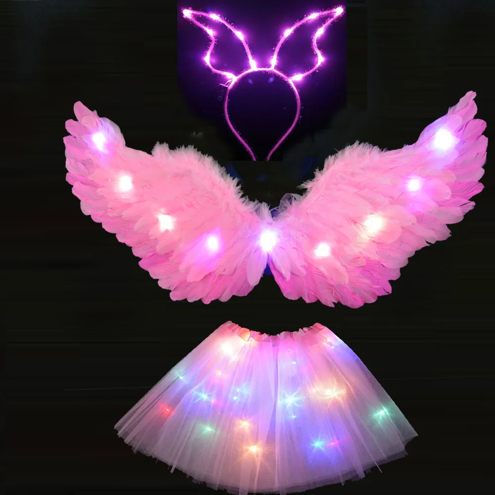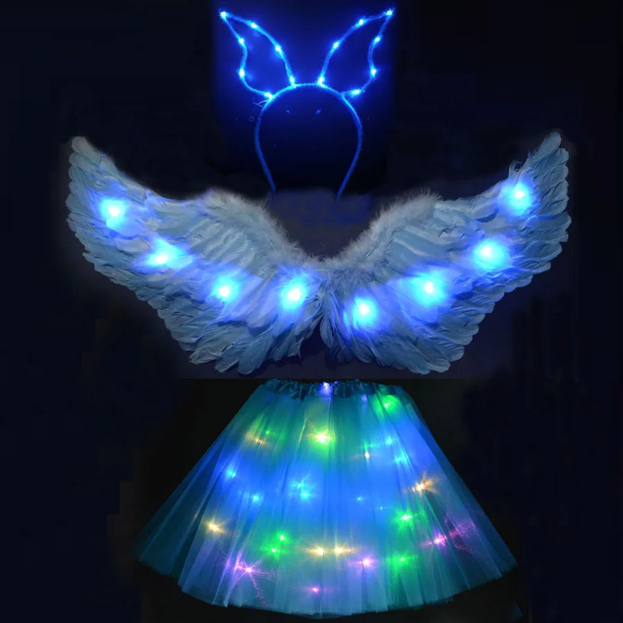 Повязка на голову с крыльями ангела, юбка-пачка, светильник ящийся костюм на день рождения и Рождество, светящаяся светодиодная одежда, свадебное украшение, косплей