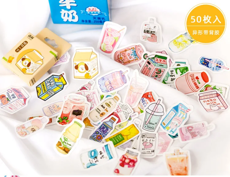 50 шт в наборе, милые молока Противоударная заданяя стикер для канц...