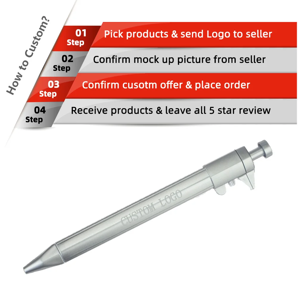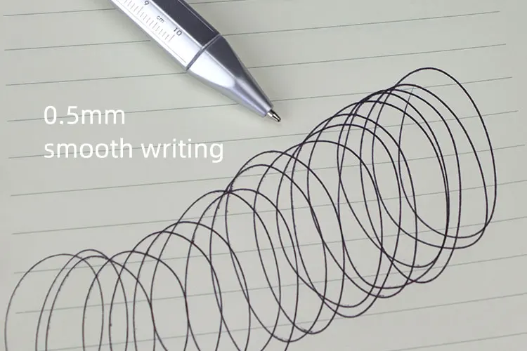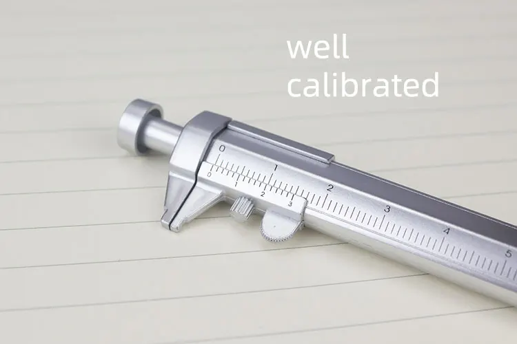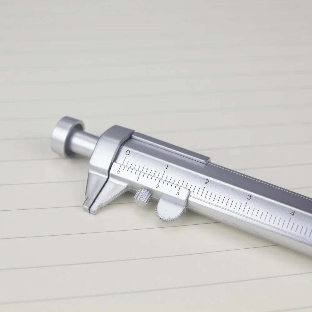 Ручка шариковая 2 в 1, серебристый цвет, штангенциркуль скользящий Калибр
