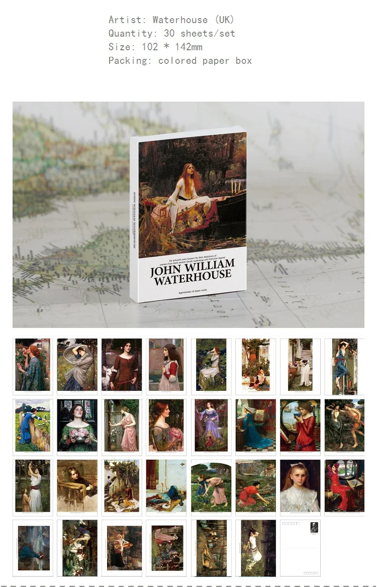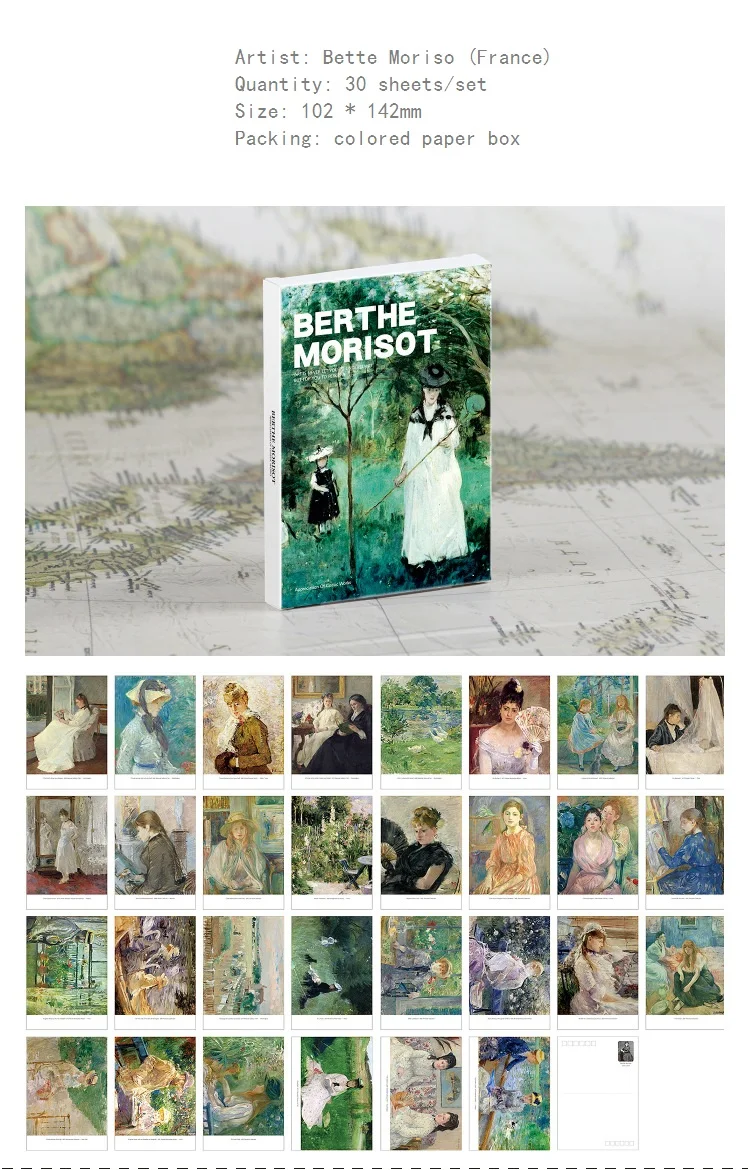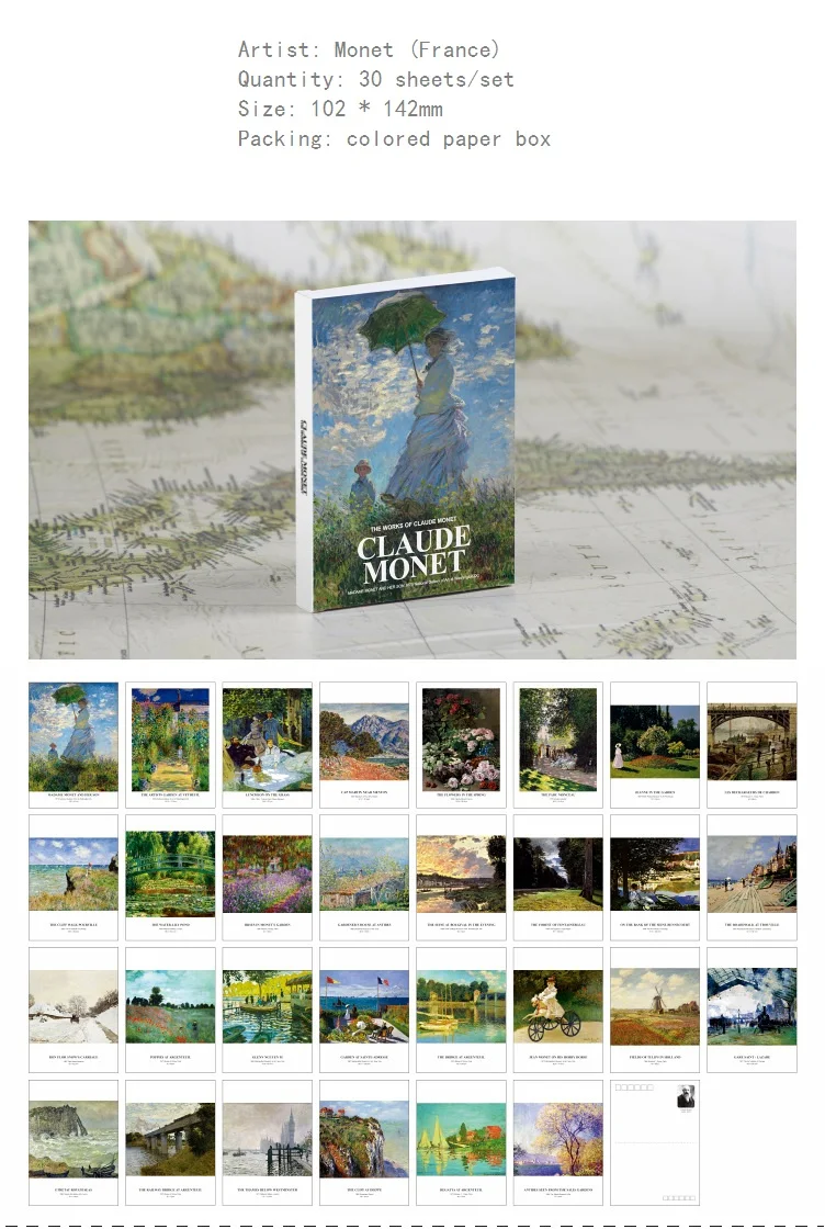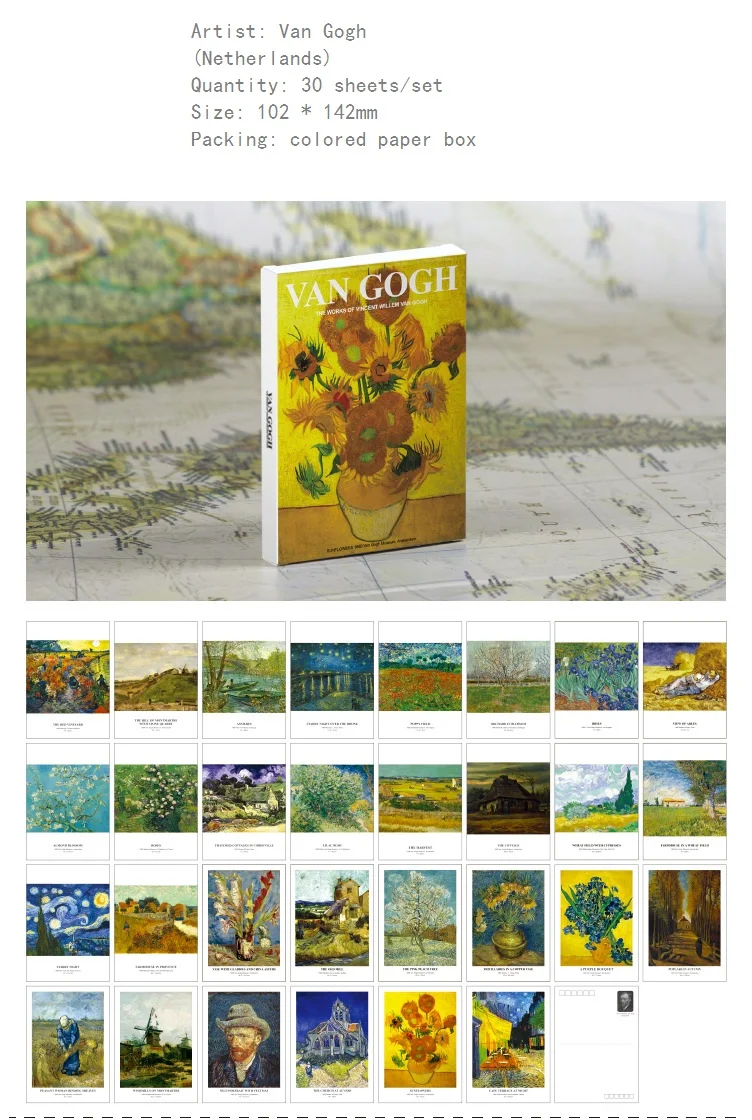 30 шт.компл. художественная серия известных художников, английские открытки в стиле INS, поздравительные открытки, украшение для журнала сделай сам, Подарочная открытка Ван Гога