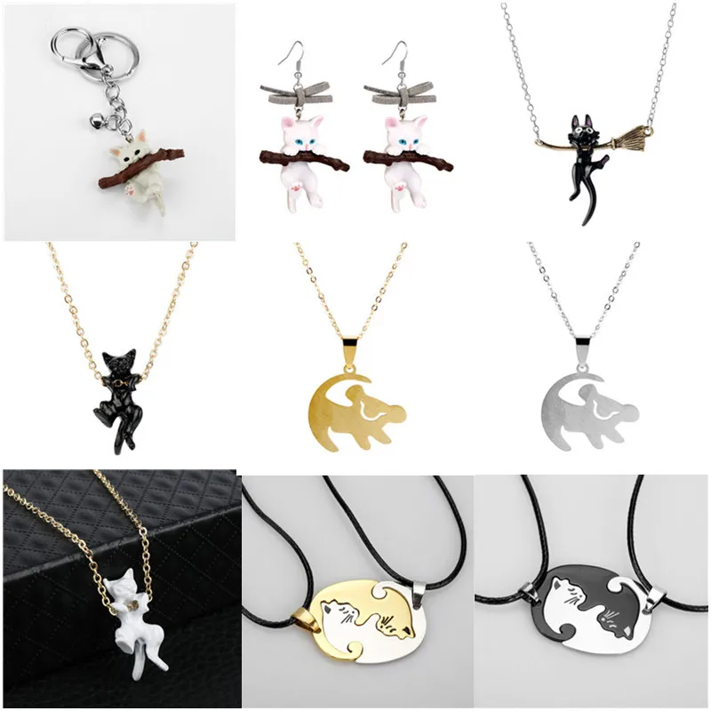 Брелок для ключей с изображением кошки, котенка, черного и белого цвета, парные брелки для ключей
