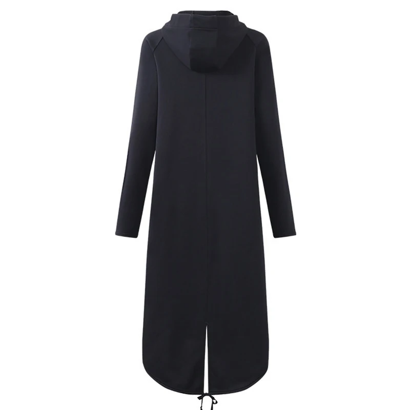 Женская Длинная толстовка на молнии, повседневная куртка с капюшоно...