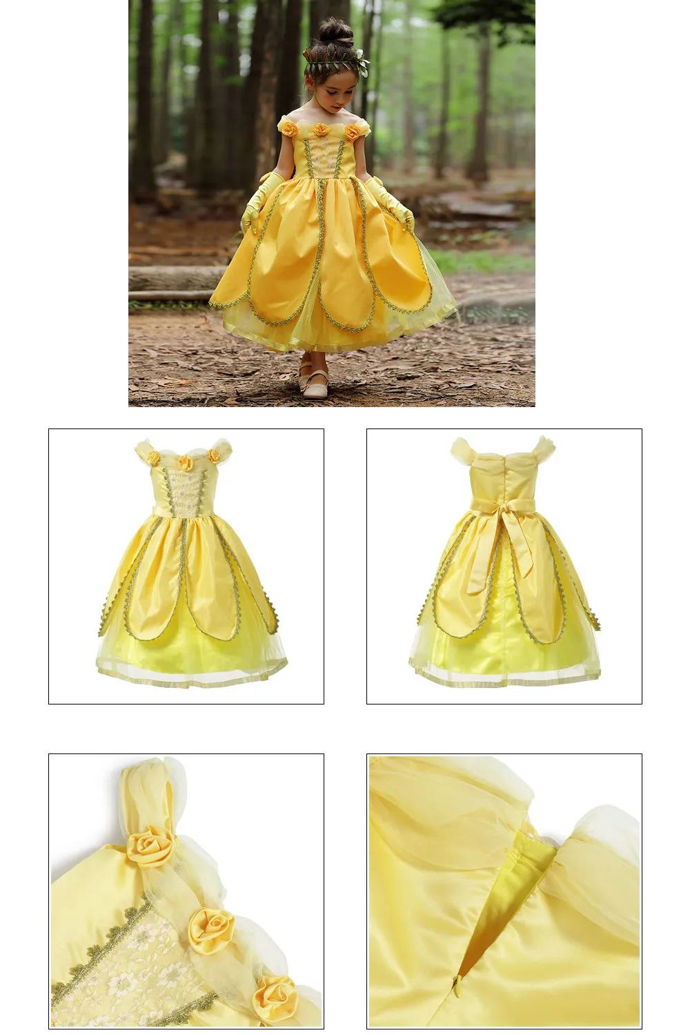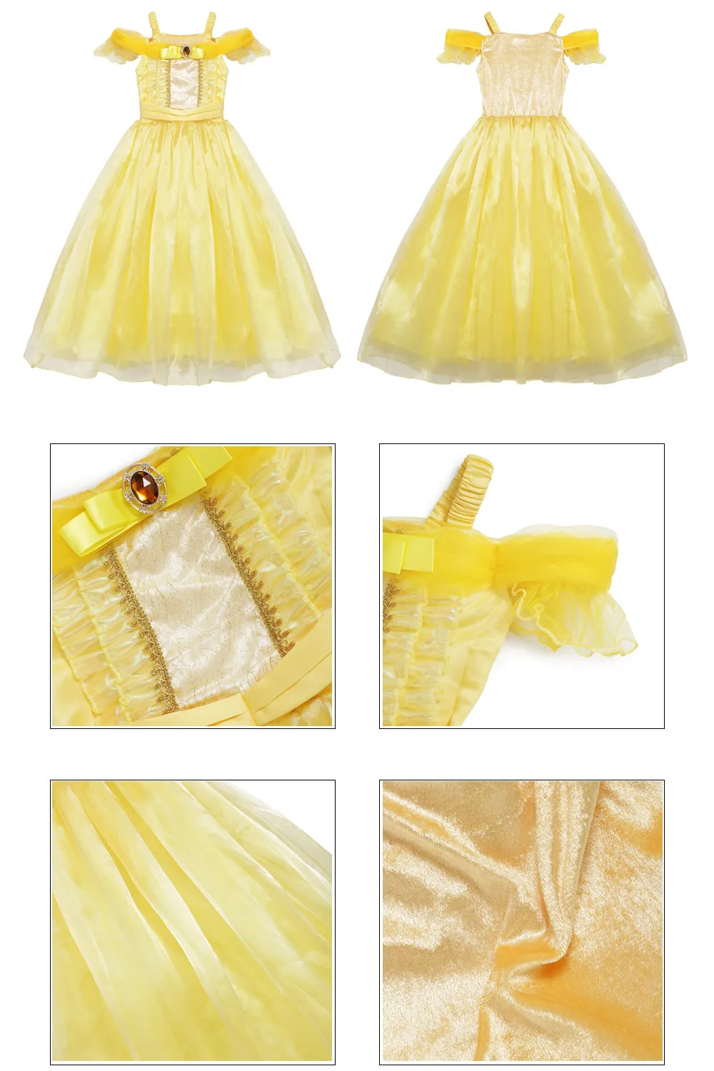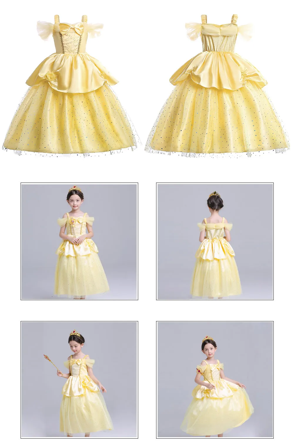 Платья принцессы Белль для девочек косплей Красавица и Чудовище дет...