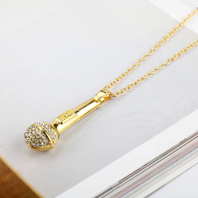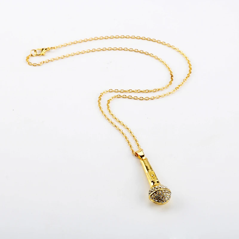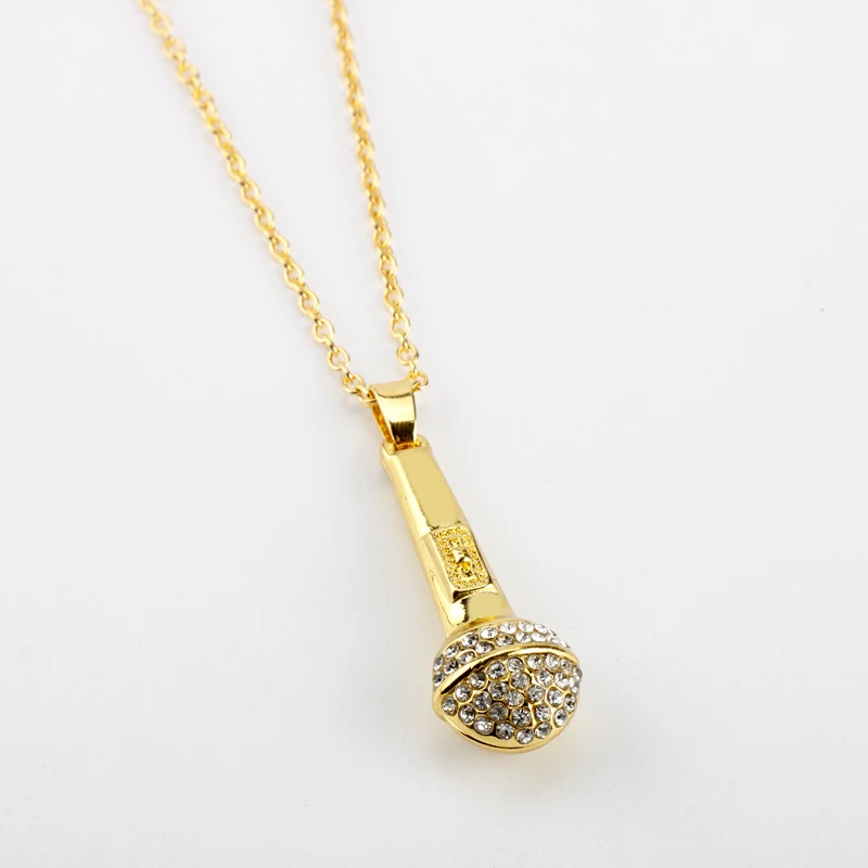 Ожерелье-цепочка с микрофоном и кристаллами, рэпер, наушники, гарнитура, подвеска в виде музыкальной ноты для мужчин и женщин, ювелирные аксессуары в стиле хип-хоп