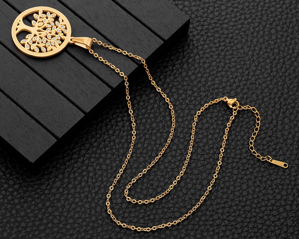 Дерево жизни кристалл круглый маленький кулон ожерелье Золото Серебристый Нержавеющая сталь Элегантные женские ожерелья 2020 новые модные ювелирные изделия