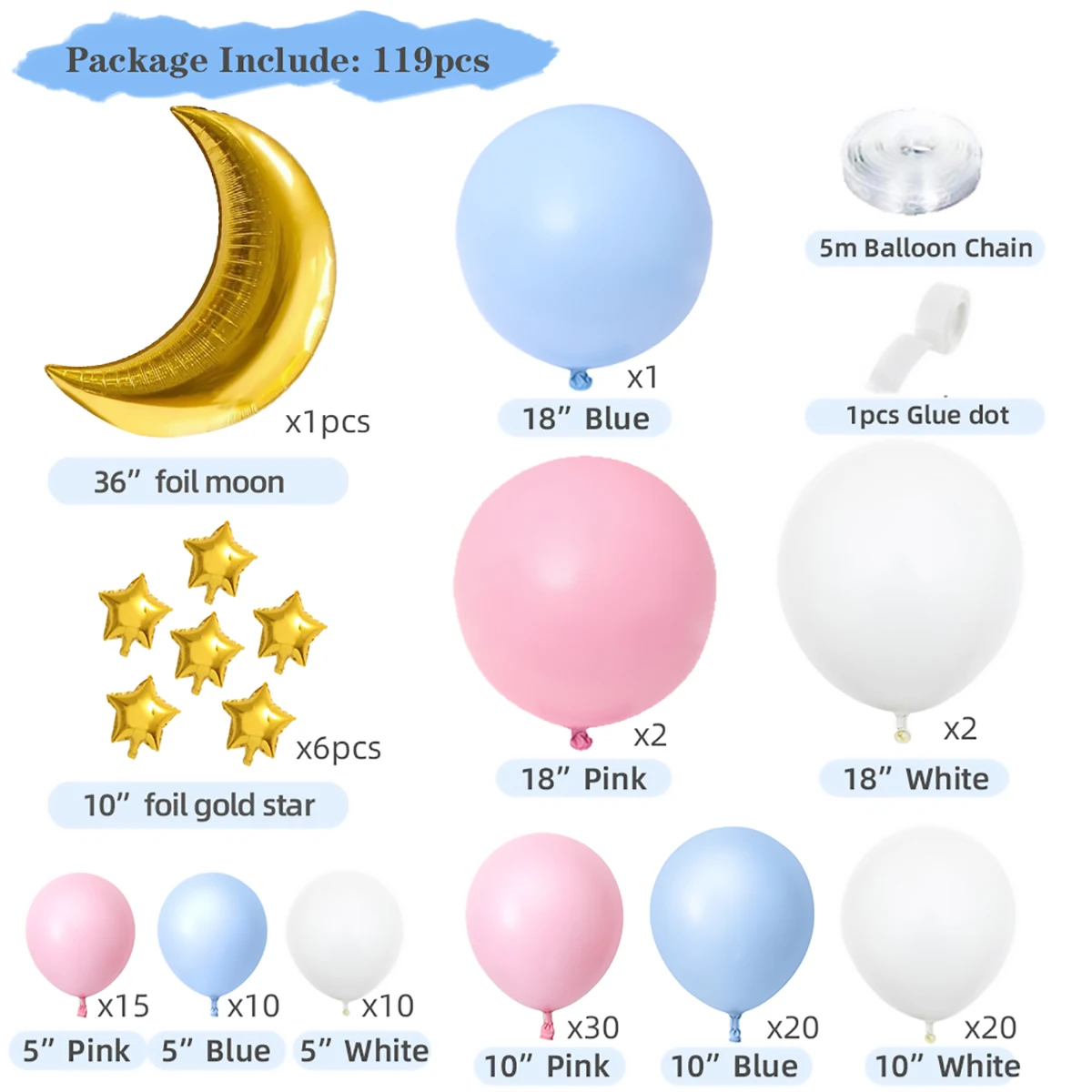 Синие воздушные шары, гирлянда, 141 шт., детские синие и белые лате...