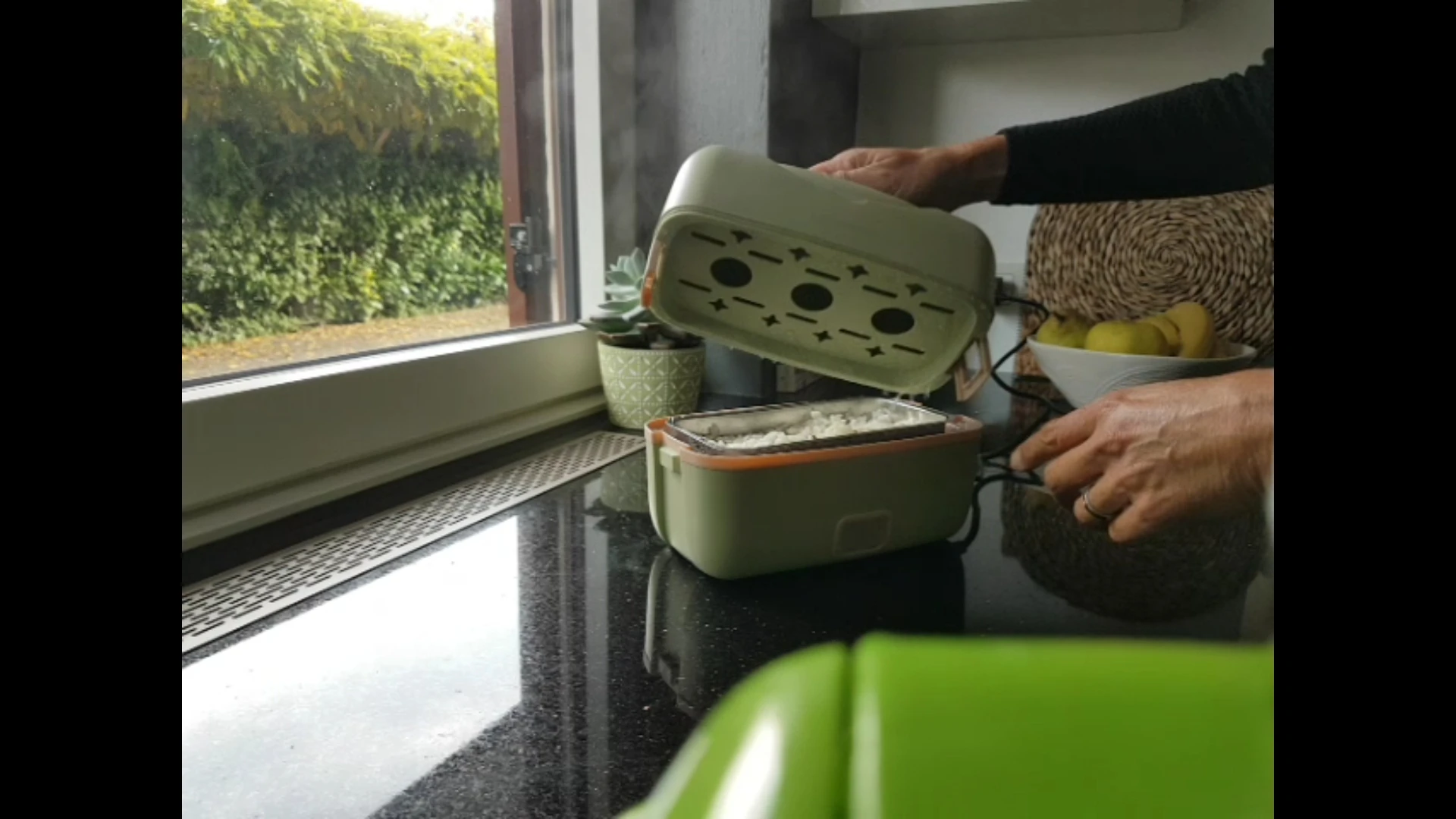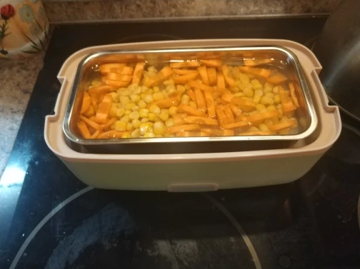 Вещь хорошая! Если негде поставить микроволновку и т.п. - это идеальный вариант для работы. Для хорошего разогрева ( прям чтоб горячо было) необходимо минут 15-20. А если уже немного тёплой воды налить, то еще быстрее. Контейнеры герметично не закрываются. т.е. они делают вид сначала ( по механизму вакуума), но если крышку немного задеть, то происходит разгерметизация и крышка слетает. я оставила сам бокс на работе (довольно большой, чтоб его с собой брать каждый день), а контейнеры ношу в сумке для ланча. Но супы бы не рискнула бы брать. А так- довольна. Спасибо. N.B! когда вода заканчивается, то он сам автоматически отключается. Не спрашивайте, откуда я это знаю...