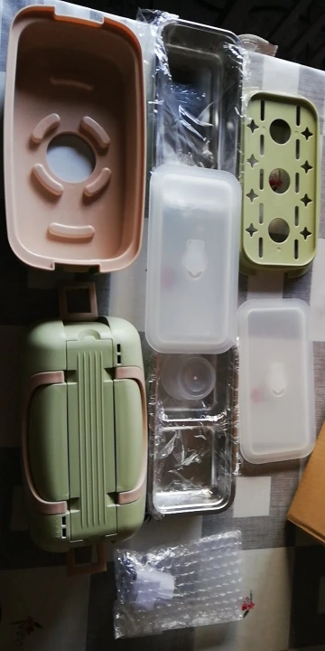 Эффектно выглядит как парение, поэтому, хотя инструкции на китайском языке, и вы не обнаружите, в конце концов, это не позволит быть похожим на паровую или микроволновую печь. Вы налеваете воду ab чеснока на основание, которое нагревается и парит в закрытой трубке, затем на подносах Положите продукты для подогрева или риса с помощью воды соли, чеснока или овощей и положите его о воде, которую вы выкинули сначала, как ванная комната Марии. Вы закрываете Таппер и подключаете к нему тепло. Рис около 25 мин нагревается 15 мин. Он имеет пространство для небольших столовых приборов или палочек для еды. Выглядит как сумка размера. Это здорово для меня, за исключением того, что вы едите в общей зоне и делитесь микроволновкой и т. д. я больше не делюсь и не люблю горячее! Быстрая доставка! Поторопитесь! 1 неделя или около того