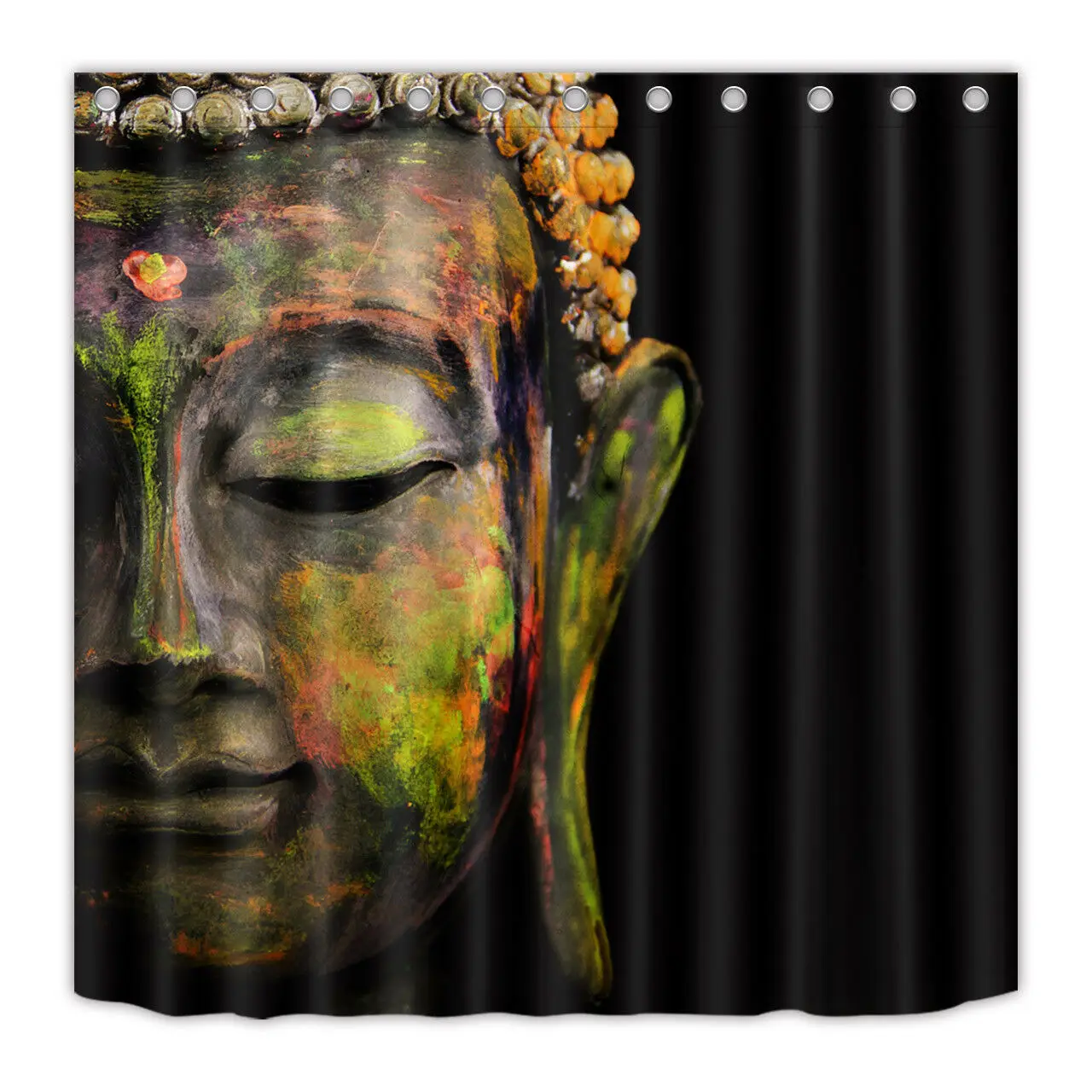 Цветная занавеска для душа в виде Будды, водонепроницаемая ткань, комплект крючков для ванной комнаты