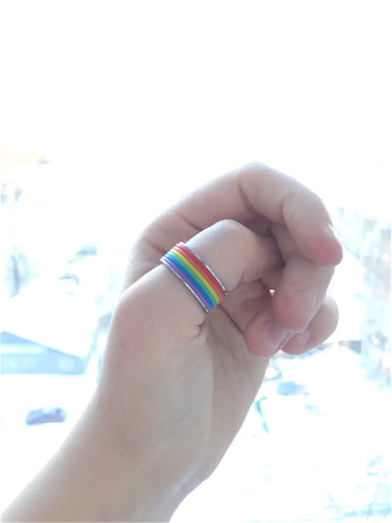 Для мужчинДля женщинЦвет радугиКольцо из нержавеющей сталиРемешок LeSКольца для пар bian & Gay