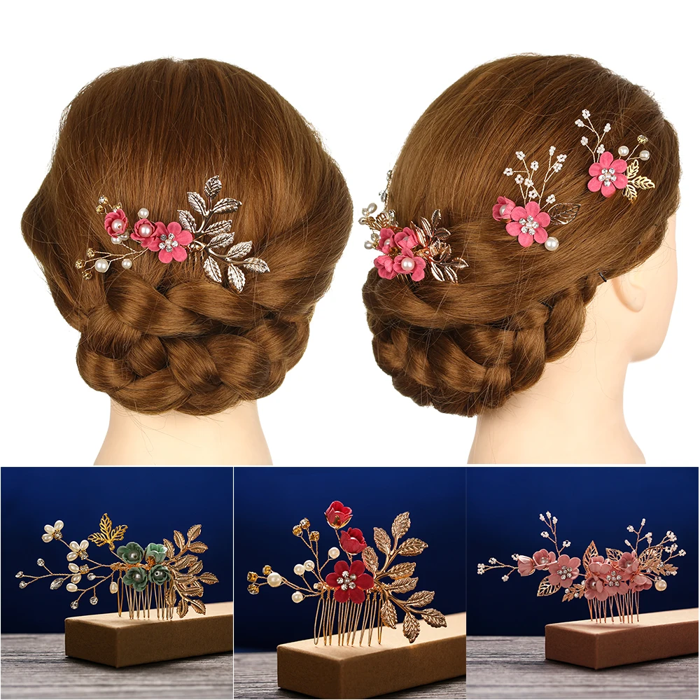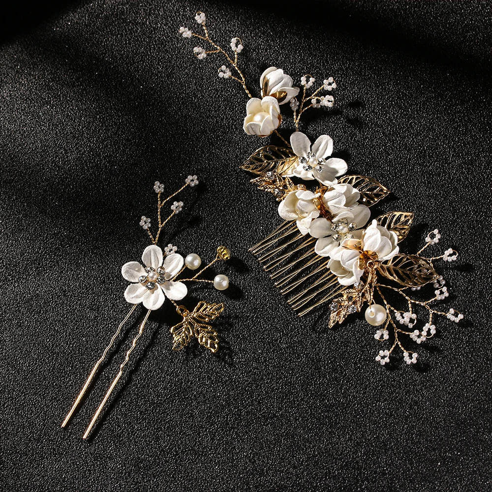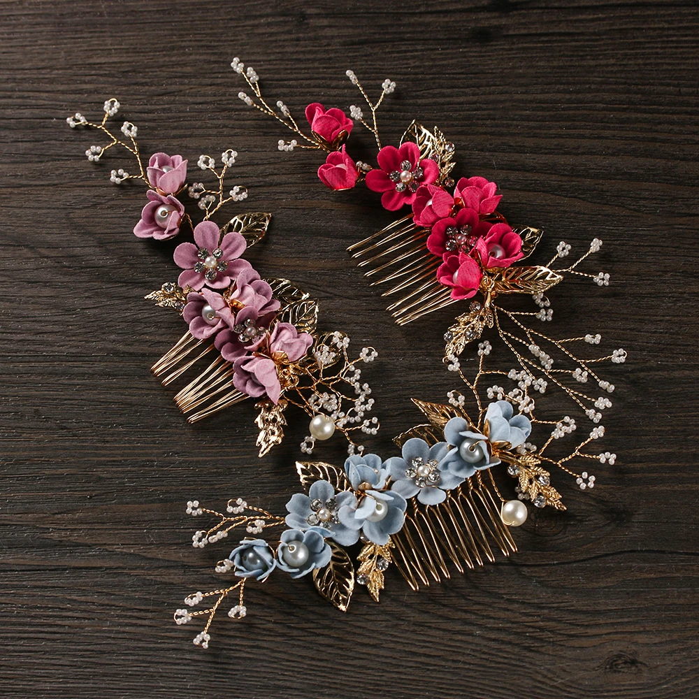 2021 модные роскошные гребни для волос с синими цветами, аксессуары для волос на выпускной вечер золотые листья, свадебные украшения, заколки для волос