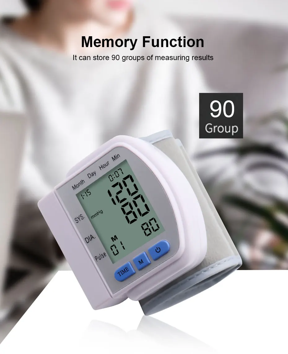 Бытовой медицинский автоматический цифровой наручный Монитор артериального давления Bp тонометр наручный Сфигмоманометр Тензиометр tansiyon aleti 1. Автоматическое измерение 2. Память 90 групп памяти родителей каждой группы. Отображение трех последних средних измерений. 3. Последовательно запрашивайте данные памяти 4. ЖК-дисплей HD: Отображение данных четко видно. 5. Операция автоматически выключается в течение 1 минуты без работы 6. Точность измерения артериального давления: просто быстро и точно. 7. Аритмия пульса обеспечивает эффективное предупреждение о проблемах с сердцем. 8. Маленький, удобный для переноски.