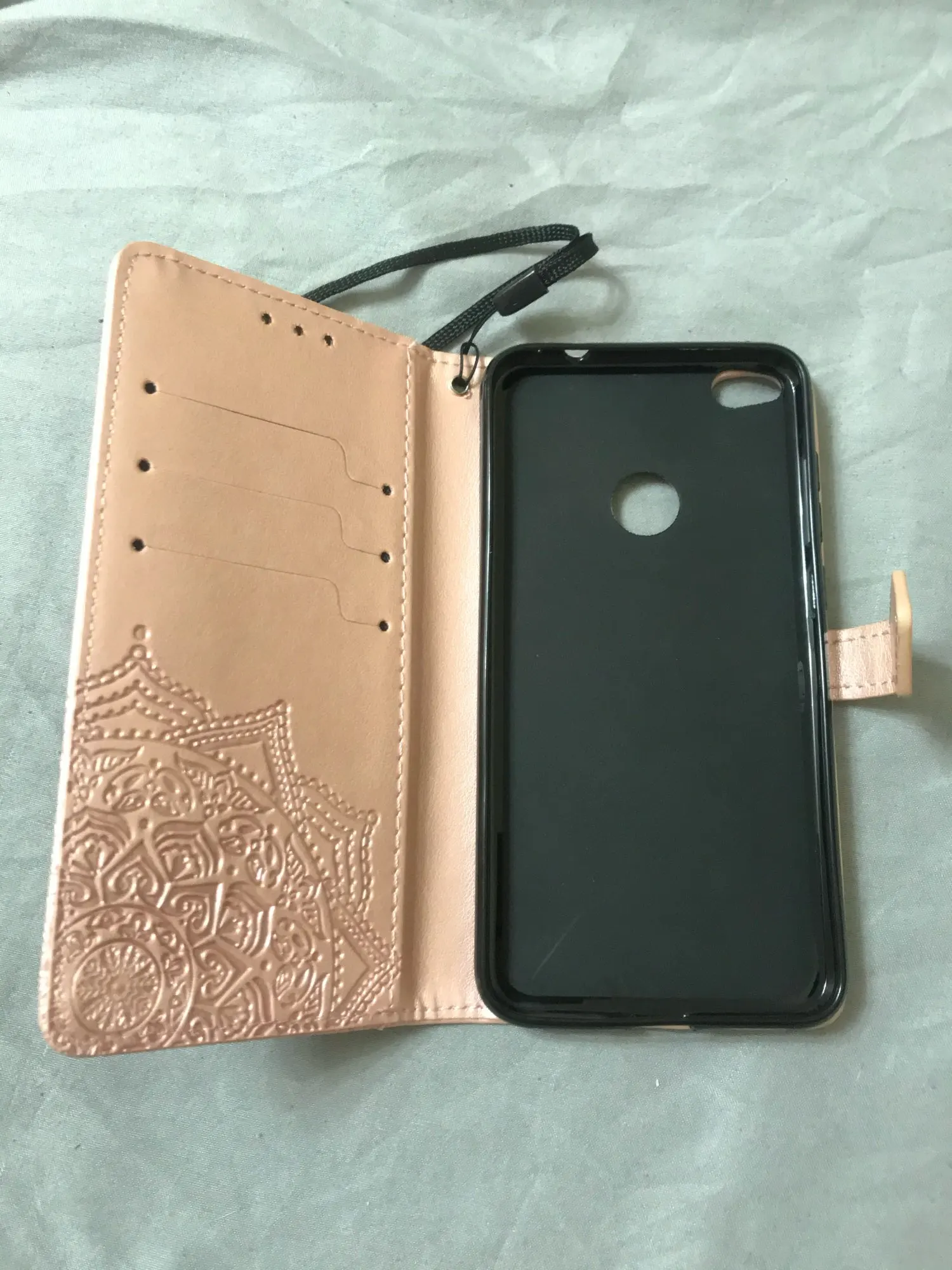 Чехол пришёл быстро. На телефоне выглядит как на фото, описание один в один. Заказывал маме в подарок, ей очень понравился.