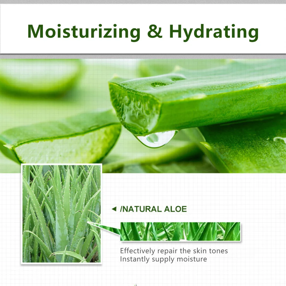 1. Натуральные и мягкие экстракты алоэ могут эффективно восстанавливать тонус кожи и мгновенным подачей влаги, чтобы оставить вашу кожу гладкой, мягкой и здоровой, омолаживающей и против морщин. 2. Свежий Гель-светильник позволяет быстро впитать кожу снизу, обеспечивая длительный эффект увлажнения, не оставляет следов жира и не создает жирных ощущений. 3. Не раздражающие кожу и все типы, довольно мягкие для даже чувствительной кожи, легко восстанавливают яркость кожи, чтобы показать вашу истинную красота, также может успокоить кожу после длительного воздействия солнца.