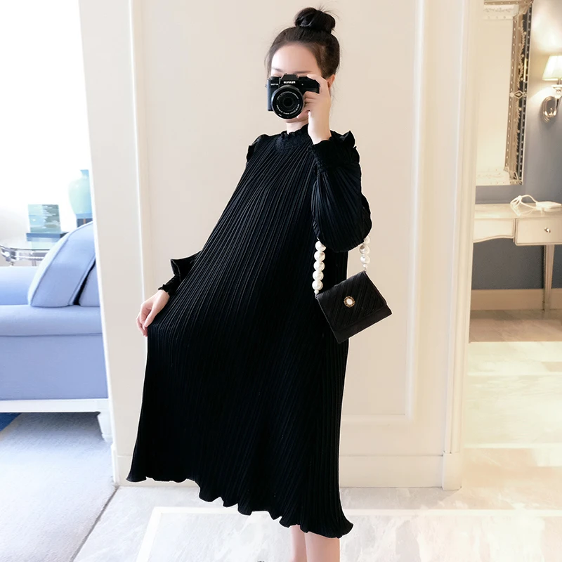 Новинка Весна 2022, длинные платья, милая плиссированная Свободная одежда для беременных женщин, одежда для беременных