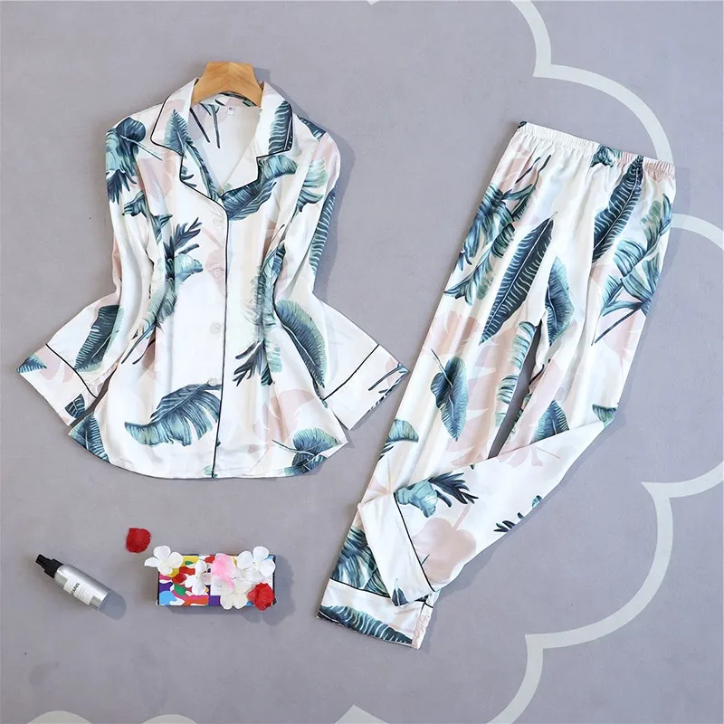 Пижамы больших размеров комплектов, женская рубашка, штаны, одежда для сна, M-5XL, домашняя одежда, халат, банный халат, весна-осень, пижамы