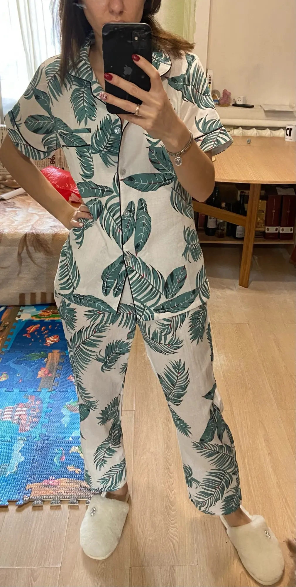 Отличная пижама, все понравилось. Если хотите чтобы было посвободнее берите на размер побольше.