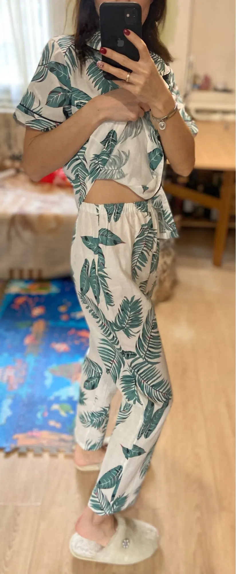 Отличная пижама, расцветка весёлая, советую. На рост 175 штаны немного коротковаты, но для дома не критично.