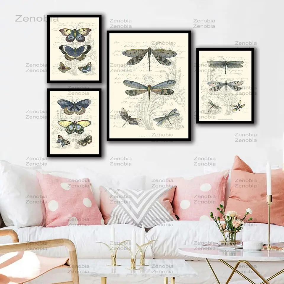 Скандинавская акварельная картина, настенная Картина на холсте, Бабочка, стрекоза, животные, плакаты и HD-принты, абстрактные Свадебные украшения