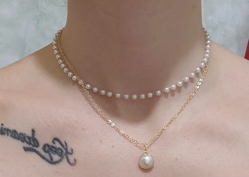 Ожерелье-чокер женское, Двухслойное, с жемчугом, 2021